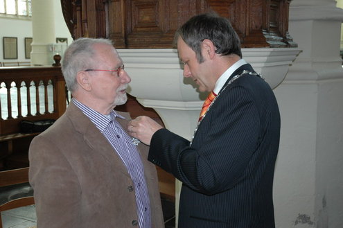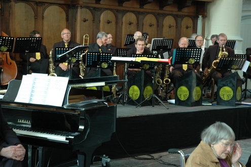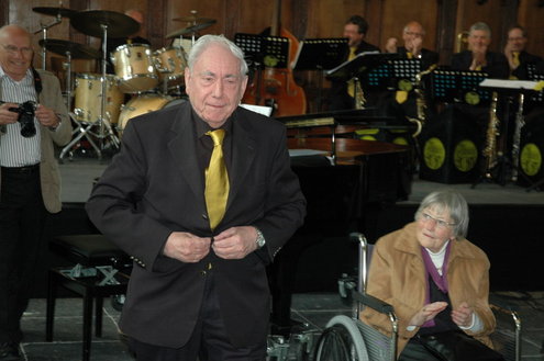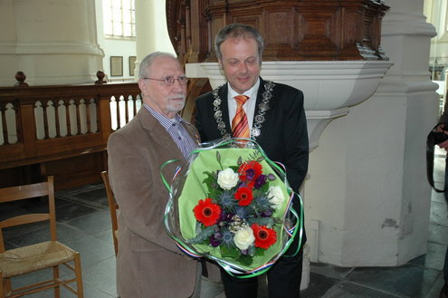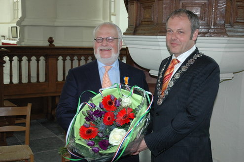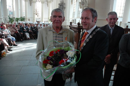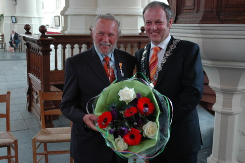 Vanmorgen werden, zoals elk jaar op de dag voor Koninginnedag, in de Hooglandse Kerk 19 stadsgenoten koninklijk onderscheiden tijdens de jaarlijkse lintjesregen. Hoewel de onderscheiding voor iedereen als een verrassing kwam, was de naamgever van de Frits Landesbergen Big Band ongetwijfeld het meest overdonderd. De gemeente boekte de band om de onderscheiding luister bij te zetten. Tegen het einde van de uitreiking wees burgemeester Lenferink op een stoel die leeggebleven was. “U denkt misschien, er is iemand niet op komen dagen, maar niets is minder waar”. Op dat moment begon het Landesbergen te dagen en keek hij zijn bandleden vragend aan. Enkele minuten later stond ook hij bij de overige decorandi en speelde de band verder zonder de leider.