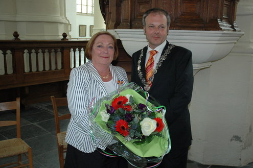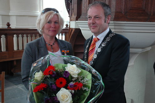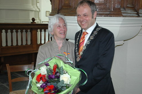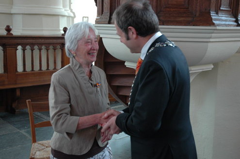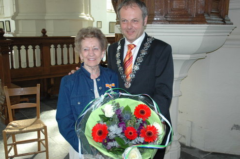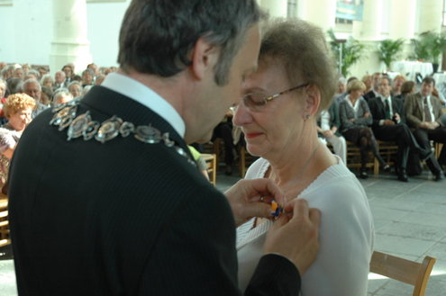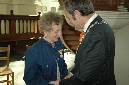 18. Mevrouw M.J.A. Duijndam – Dupont, uitreiking in Leiderdorp, Lid in de Orde van Oranje-Nassau