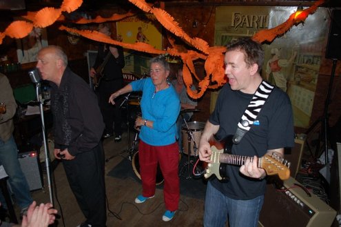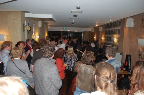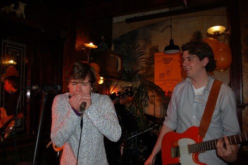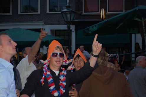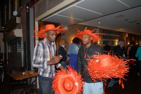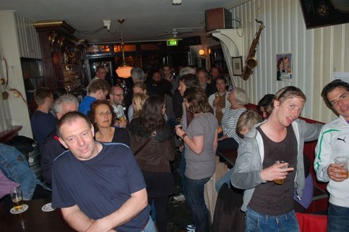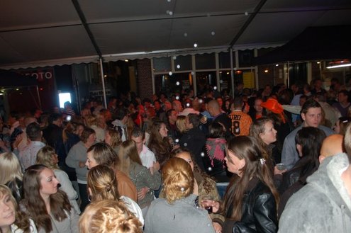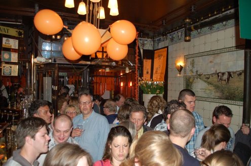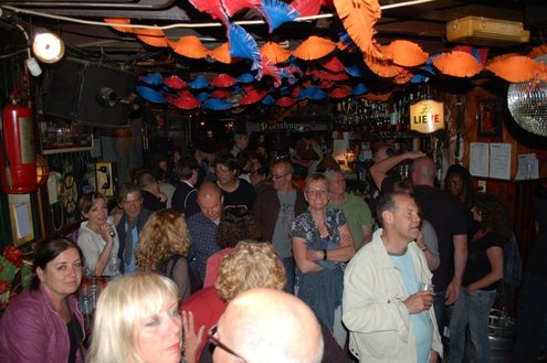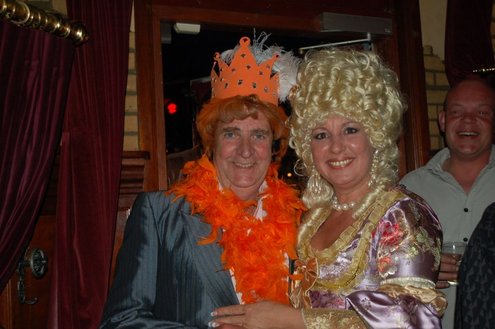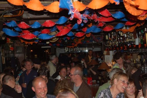 Gisteravond ging met recht een spetterende Koninginnenacht van start; het spetterde wat, dat mocht niet hinderen, grote drommen mensen, uitgedost in oranje bevolkten de Leidse straten en cafés. Emile van Aelst bezocht een flink aantal Leidse kroegen, waar het traditionele Leids Glibberbal werd gehouden met diverse optredens van eveneens spetterende bands en deed (foto)verslag. De Koornbeursbrug, omgebouwd tot podium, trok veel publiek met ‘De Tranentrekkers’ en de band ‘Alderliefste’. Ook in het enige echte Leidse rookcafé, ‘Ons cafeetje’ van Marina Bosman was het een gezellige ‘Koninklijke’ drukte en in grand café de Nachtwacht speelden de oude getrouwe Black Albino’s de sterren van de hemel. Zo langzamerhand gaat de Sleutelstad de Haagse Beatnacht een beetje benaderen. Een zeer geslaagde Leidse Konginnenacht, hopelijk volgend jaar weer!