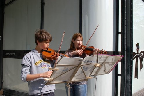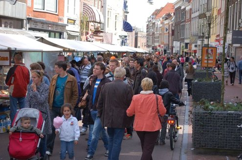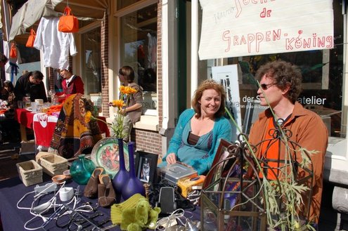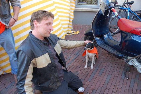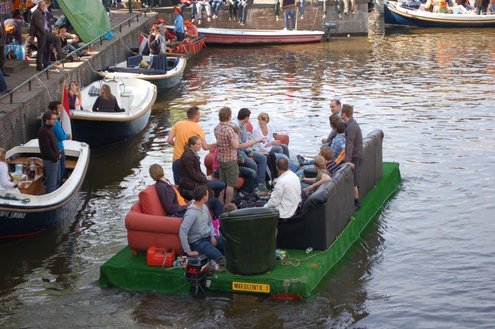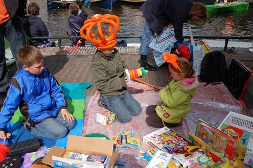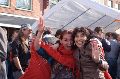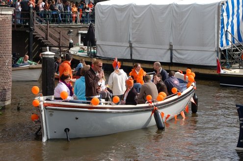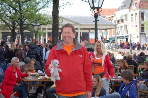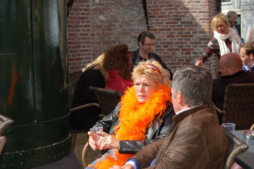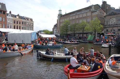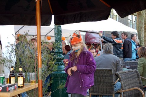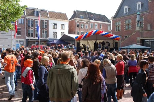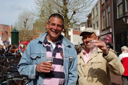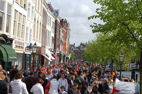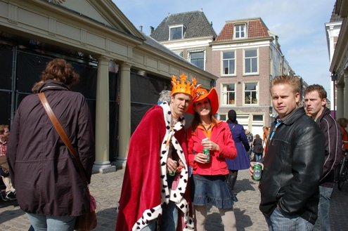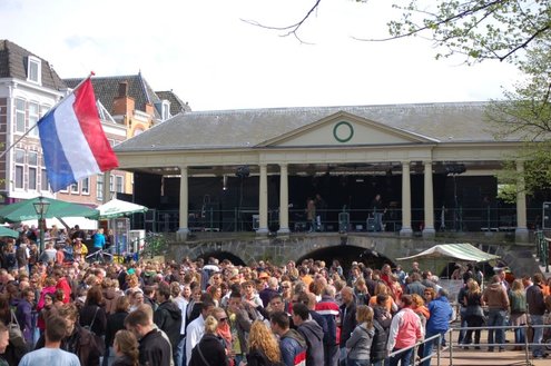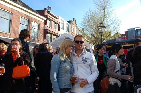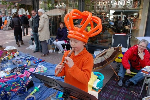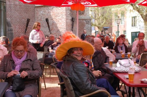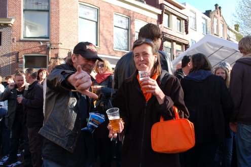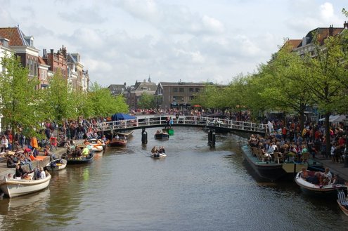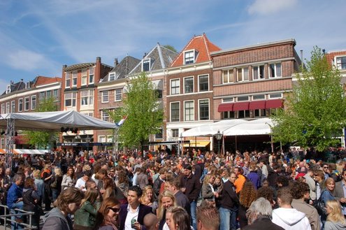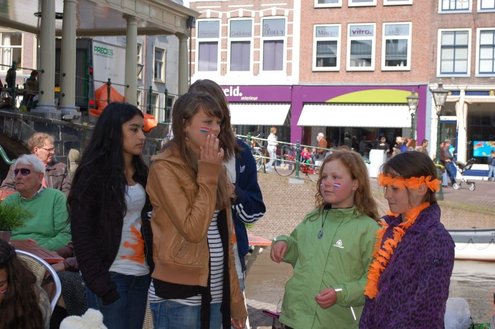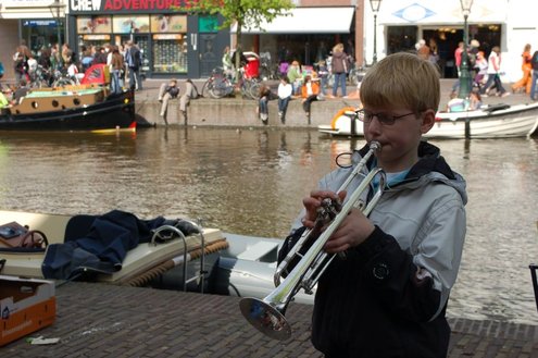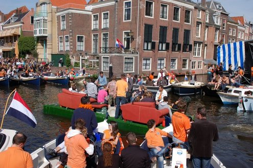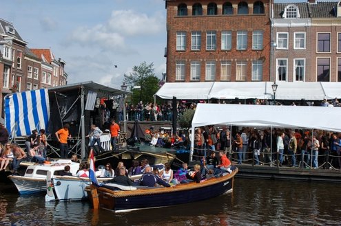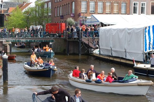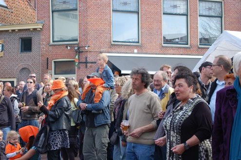 Na een miezerige start in de ochtend, klaarde het weer boven de Sleutelstad op en werd het toch nog een zonnige Koninginnedag. Gelukkig maar, want het begon met een wat treurige aanblik van paraplus en parasols boven de uitgestalde waren van de kinderen op de Hooglandse Kerkgracht, in het stadscentrum en in de verschillende buurten. Emile van Aelst fotografeerde grote en kleine artiesten, de warenmarkt, de swingende bands en de bruisende aanblik van boten, terrassen en Leidenaren, die ongedwongen feest vierden. Op het Vrouwenkerkkoorpleintje was het zo gezellig, dat Van Aelst de rest van de middag daar bleef steken en deze keer het spetterende optreden van Armin van Buuren op de Garenmarkt oversloeg. Het was een geweldig feest, dat de nare smaak van vorig jaar, waarbij de festiviteiten vroegtijdig gestaakt werden, gelukkig weer helemaal oversteeg.