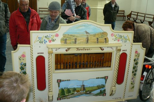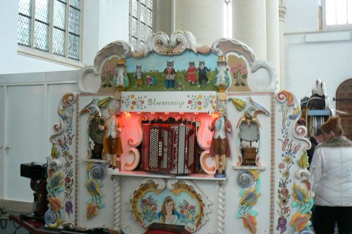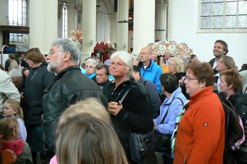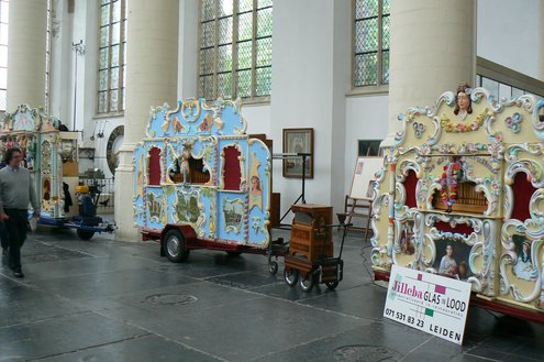 Onder de loodzware ‘herfstlucht’ steken de fleurige draaiorgels goed af. Binnenin de Hooglandse kerk is de belangstelling groot en bekijkt en beluistert het toegestroomde publiek de unieke draaiorgels uit Leiden en omgeving. Zoals altijd nu ook weer bijzondere exemplaren van heel groot tot piepklein. Om de beurt laten de orgels van zich horen. De Noabers brengen als vanouds operette-melodieën ten gehore en ‘De Slechte Band’ wordt begeleid in het Nederlandse repertoire. Tot 17.00 uur vanmiddag kan men nog genieten van deze 12e Leidse Draaiorgeldag. Marjo Heemskerk maakte voor Sleutelstad.nl een fotoverslag en IloveLeiden.com onderstaand filmpje.