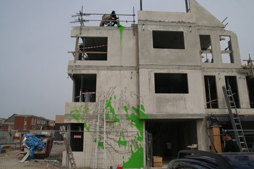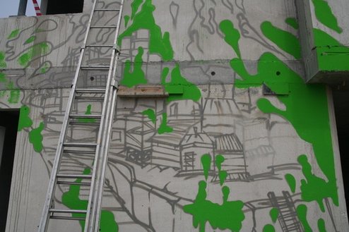 Gisteren werd op het terrein van project Nieuw Leyden, ter hoogte van de Slachthuislaan, een bijzondere ‘Casco Expo’ gehouden. Onder het thema ‘In den beginne was het einde’ exposeerden Stephan Sjouke, David in den Bosch, Jetty Iestra en Marloes Aben hun werk. Graffiticollectief ColourCastle gaf een ‘life performance’. De kunstenaars gaven hun impressies weer van de ruimtes, voordat deze door mensen worden ingenomen en wat er over zou blijven als die mensen weer zouden vertrekken. Bram Pater maakte een fotoreportage.