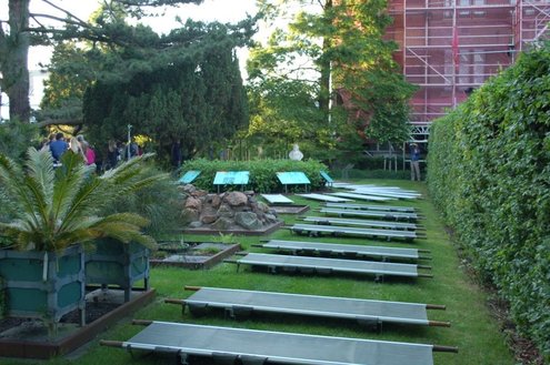 Gisteravond vond traditiegetrouw weer een groots Midzomernachtfeest in de Leidse Hortus plaats. Er viel van alles te doen, zoals diverse workshops, theater, dans en diverse muzikale optredens. Fields of Wonder verzorgde een bijzonder ballet vanuit een eeuwenoude boom. Naarmate het donkerder werd steeg de sfeer. Wethouder Jan-Jaap de Haan opende officieel het 'openluchthotel', waarvoor zo'n 100 veldbedjes stonden opgesteld in de tuinen van de Hortus. Na afsluiting van de feestelijkheden werden de 'hotelgasten' door een speciale 'hostess' naar hun 'kamers' geleid, na het afhalen van een lakenpakket. Emile van Aelst maakte een fotoreportage, maar vertrok daarna toch lekker naar zijn eigen bed thuis!