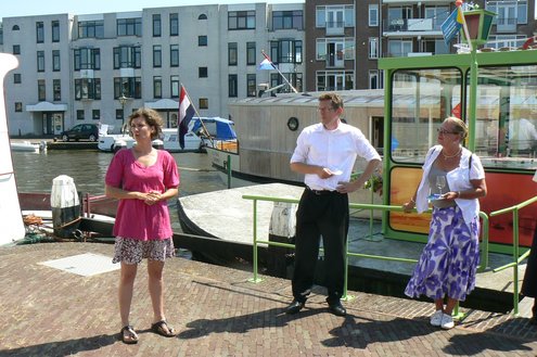 Hoewel de organisatie aangegeven had te beschikken over een groot scherm om de voetbalwedstrijd Nederland-Slowakije te kunnen volgen, was de belangstelling voor de opening van het Knooppunt Historische Vaarwegen gistermiddag gering. Dit jaar staat Zuid-Holland in het teken van de historische vaarwegen en waterlinies. In het kader daarvan en in samenwerking met diverse partijen, maakt stichting CTV Zuid-Holland Leiden in de meest letterlijke zin een knooppunt van de historische vaarwegen. Gisteren om 15.00 uur doopte Statenlid Eva de Bakker het schip de Elvira, in de Leidse Haven. Deze zal in de maanden juli en augustus dagelijks tochten maken naar Katwijk, Haarlem, Delft en Wierickerschans, over de Hollandse Plassen. Na afloop konden de bezoekers een presentatie bekijken onder het genot van een drankje en een hapje.