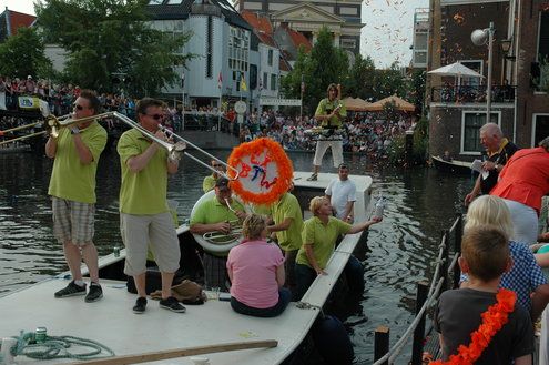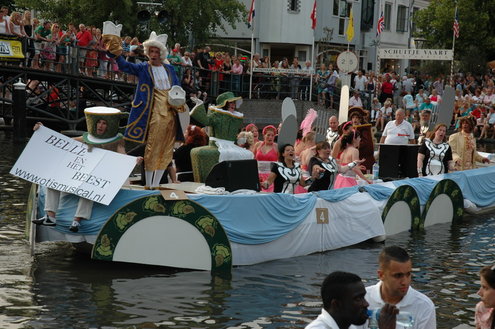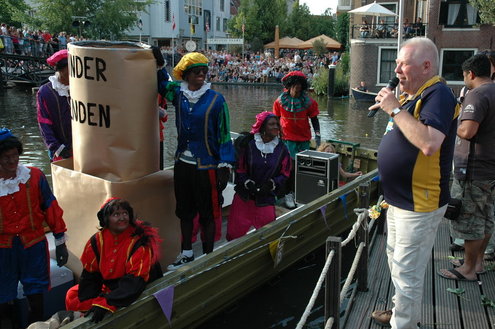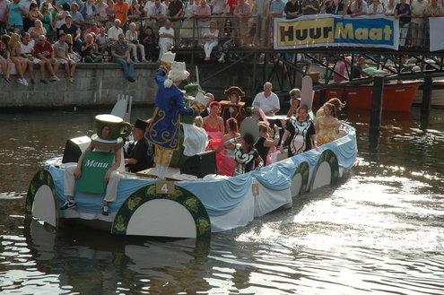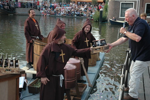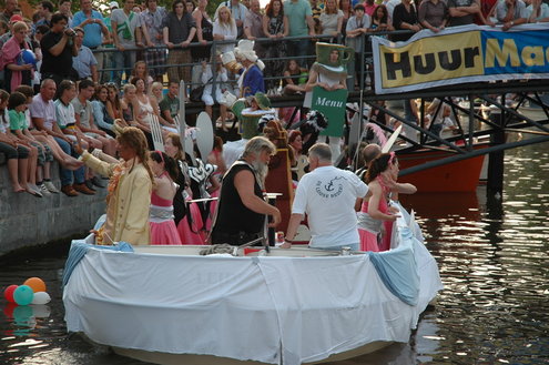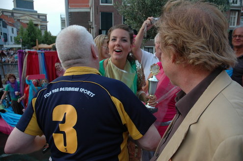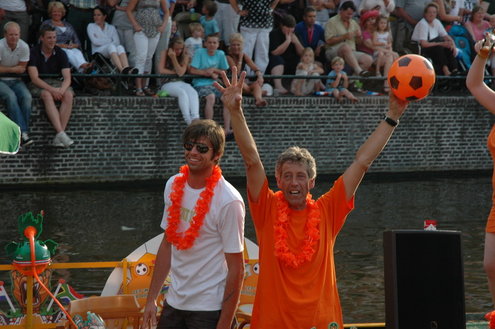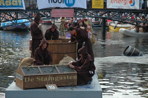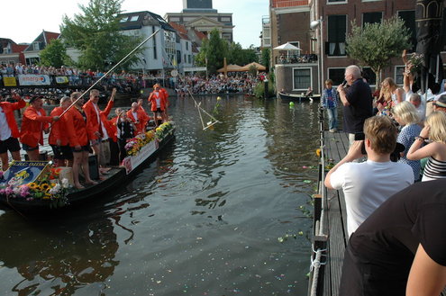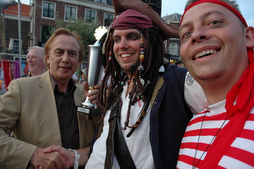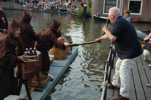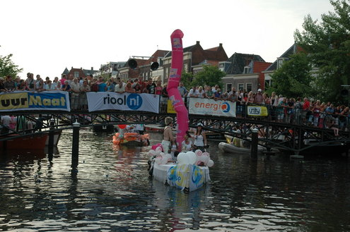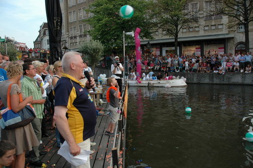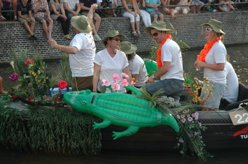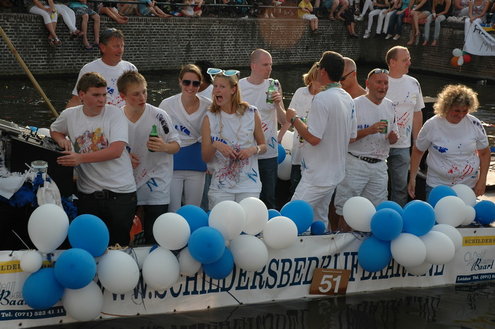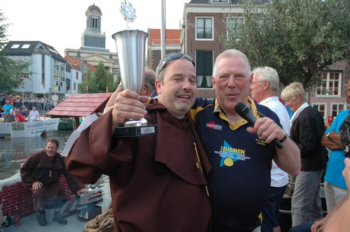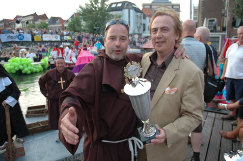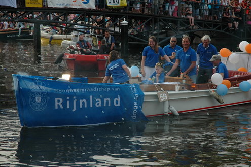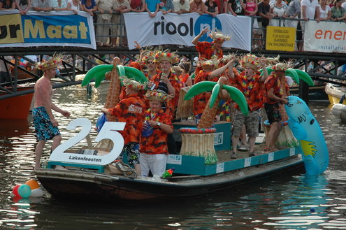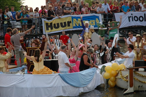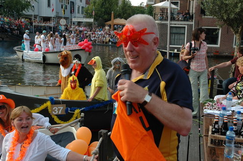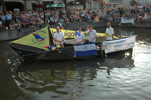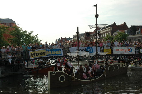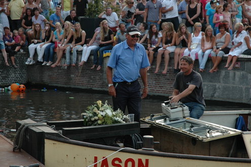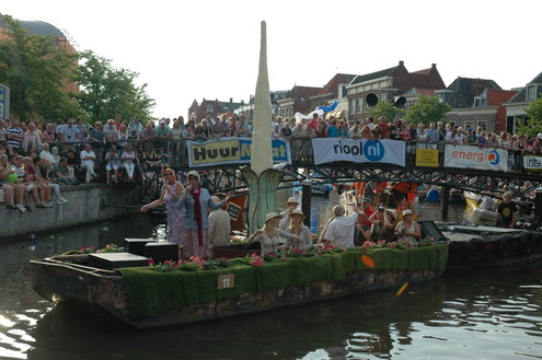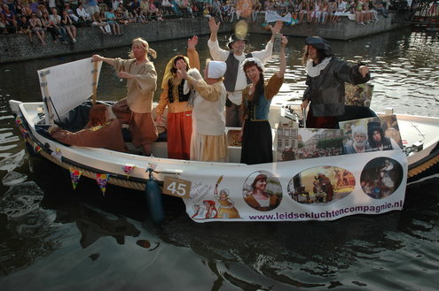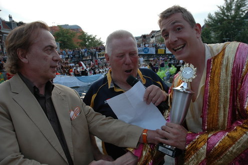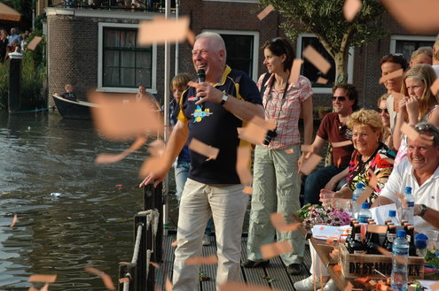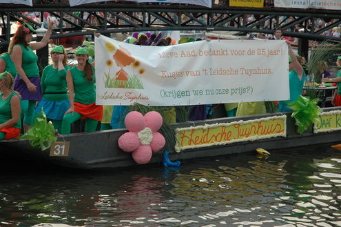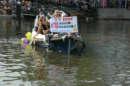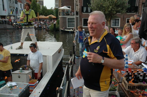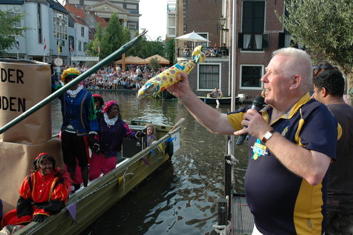 Groter en grootser dan ooit, dat was de 25e editie van de Peurbakkentocht die gisteren weer vele duizenden mensen op de been bracht. Een piratenschip, een penisplant en een wk pletterboot konden veel waardering van het publiek en de jury oogsten, maar ook lieten veel deelnemers het feit dat het de laatste keer is dat Aad van der Luit de Lakenfeesten organiseert niet ongemerkt voorbij gaan. Veel peurbakken hadden borden of spandoeken waarop Aad werd bedankt voor een kwart eeuw Leidse Lakenfeesten. Na de prijsuitreiking zette jury-voorzitter Menno Smitsloo een ‘Aadje bedankt, Aadje bedankt’ in dat massaal werd overgenomen. Van der Luit hield het daarbij bijna niet droog. Overigens blijft hij als presentator voorlopig nog wel bij de Peurbakkentocht betrokken.