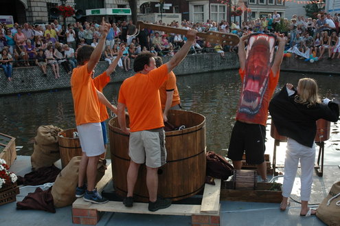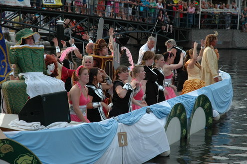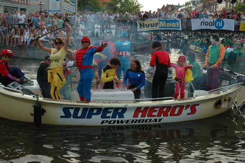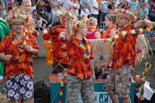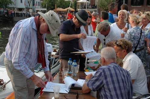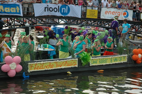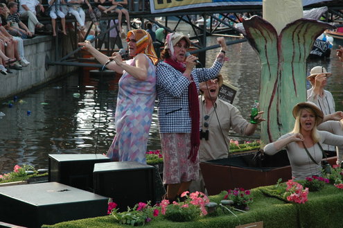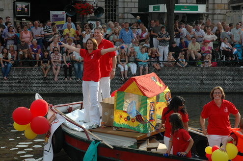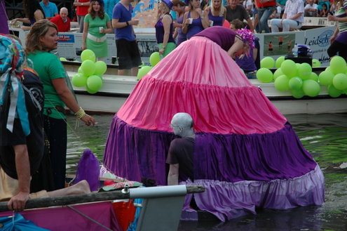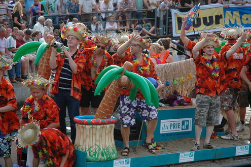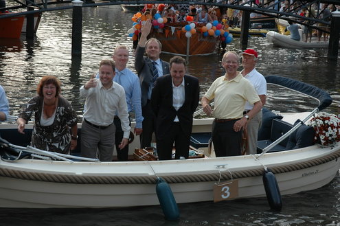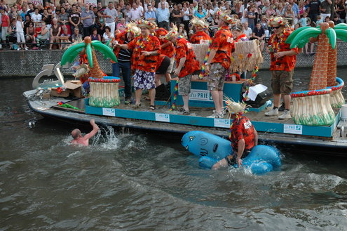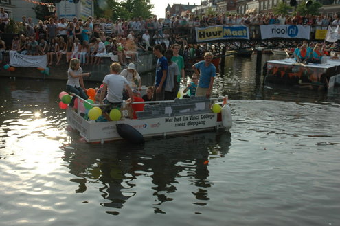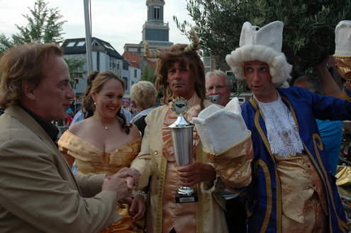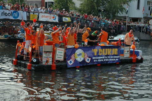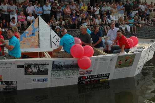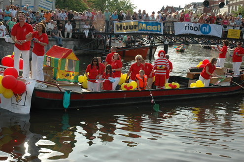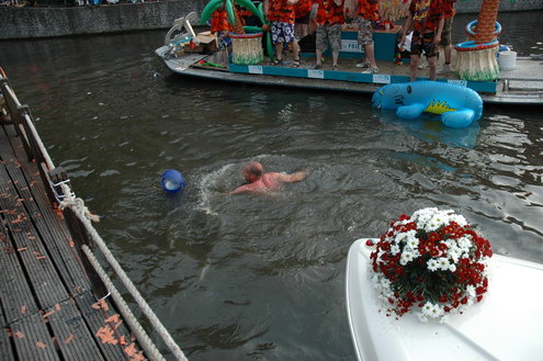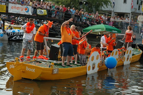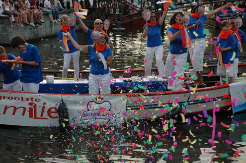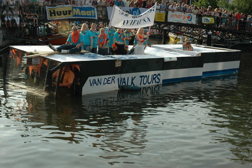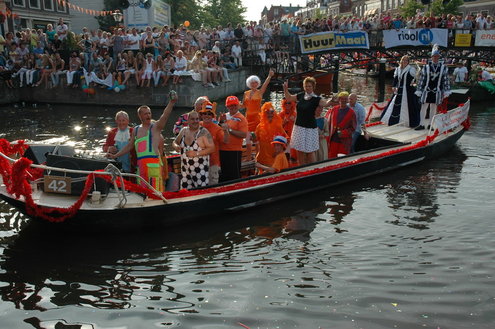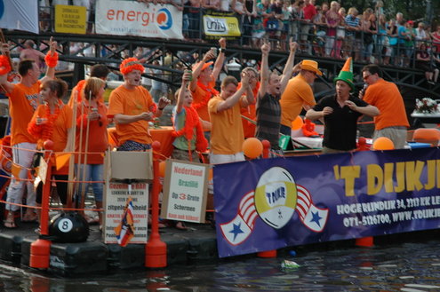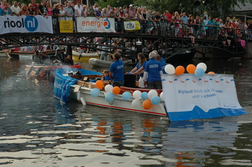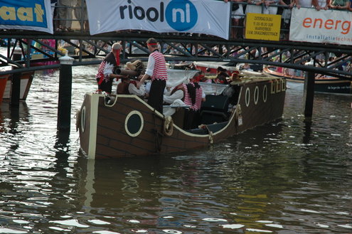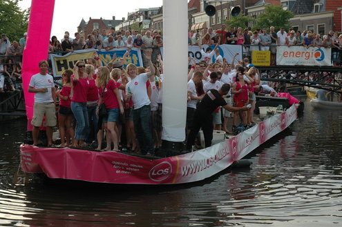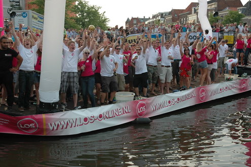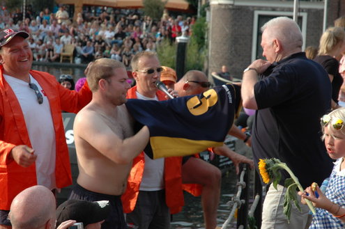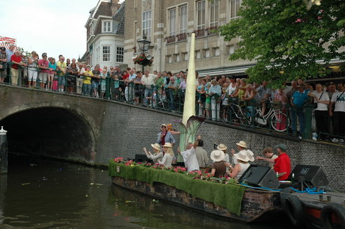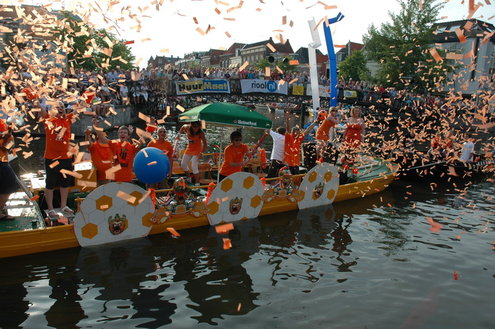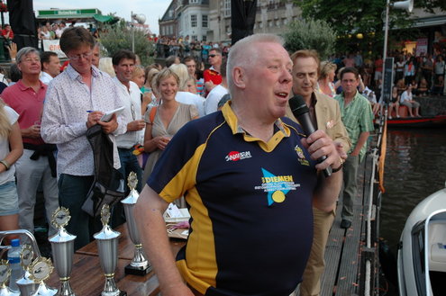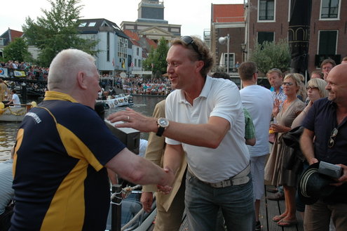 Groter en grootser dan ooit, dat was de 25e editie van de Peurbakkentocht die gisteren weer vele duizenden mensen op de been bracht. Een piratenschip, een penisplant en een wk pletterboot konden veel waardering van het publiek en de jury oogsten, maar ook lieten veel deelnemers het feit dat het de laatste keer is dat Aad van der Luit de Lakenfeesten organiseert niet ongemerkt voorbij gaan. Veel peurbakken hadden borden of spandoeken waarop Aad werd bedankt voor een kwart eeuw Leidse Lakenfeesten. Na de prijsuitreiking zette jury-voorzitter Menno Smitsloo een ‘Aadje bedankt, Aadje bedankt’ in dat massaal werd overgenomen. Van der Luit hield het daarbij bijna niet droog. Overigens blijft hij als presentator voorlopig nog wel bij de Peurbakkentocht betrokken.