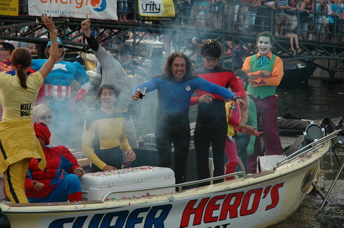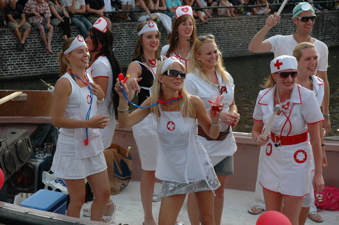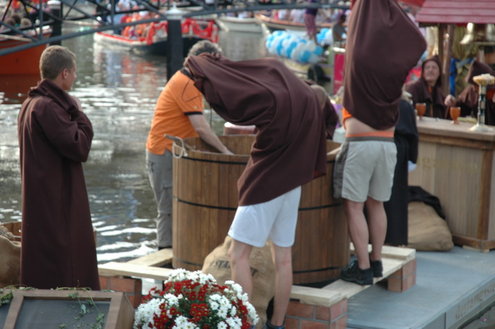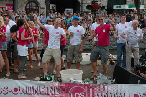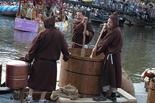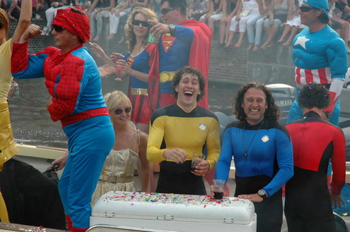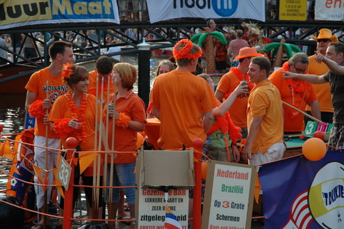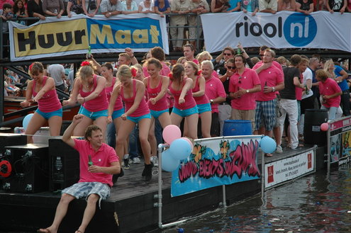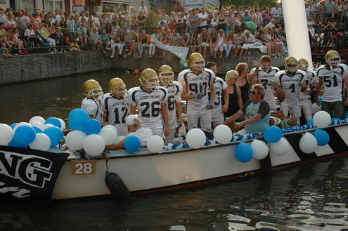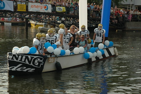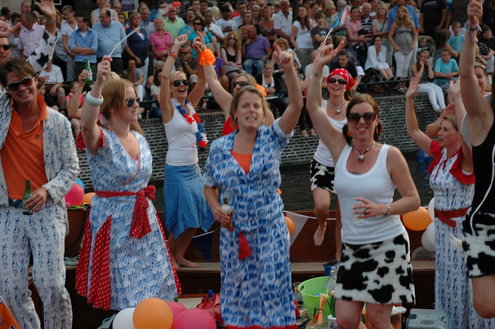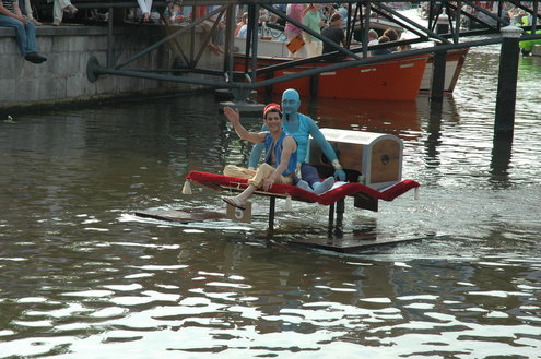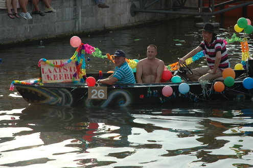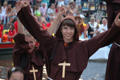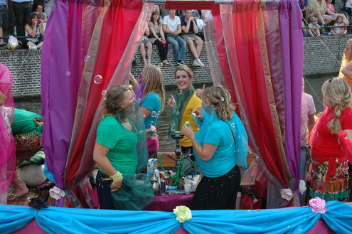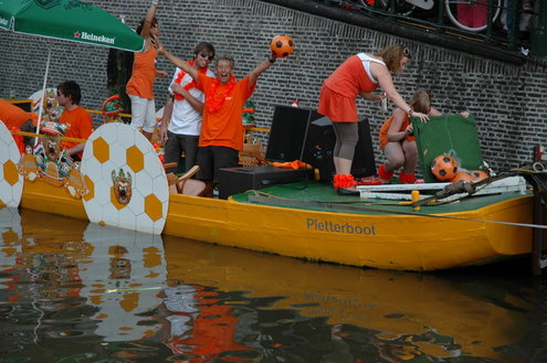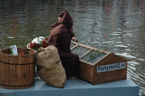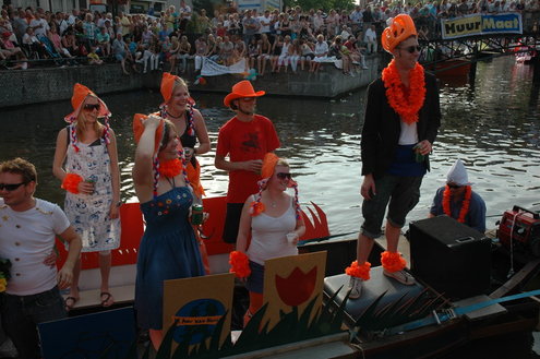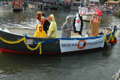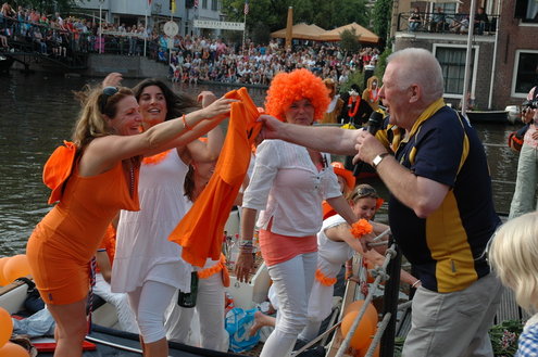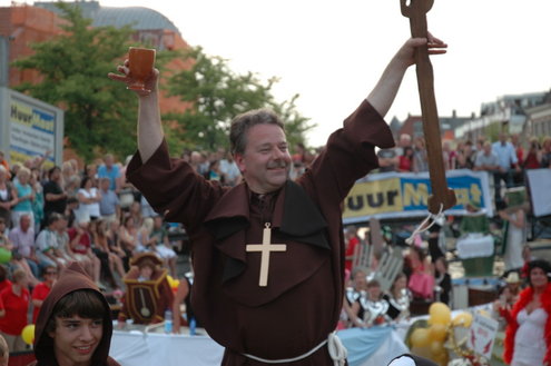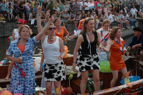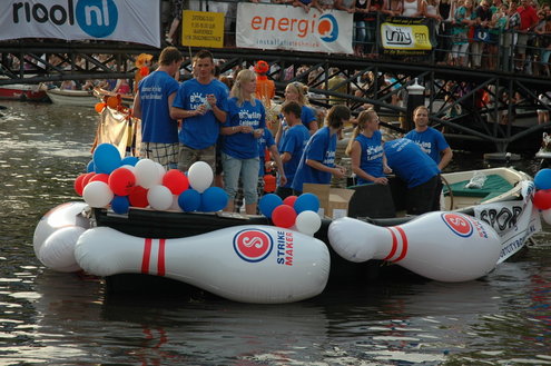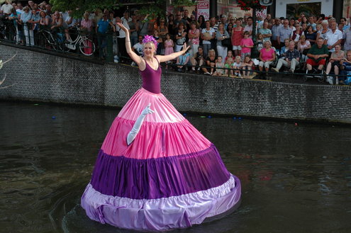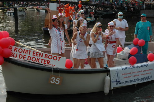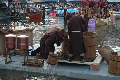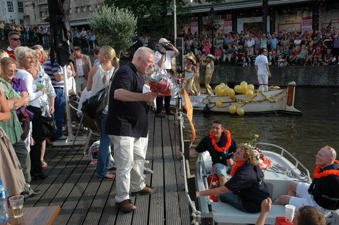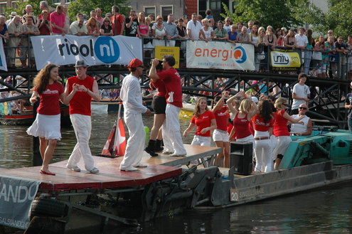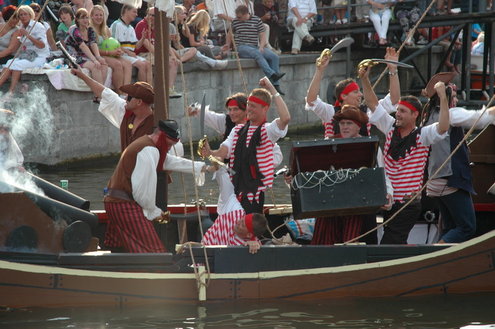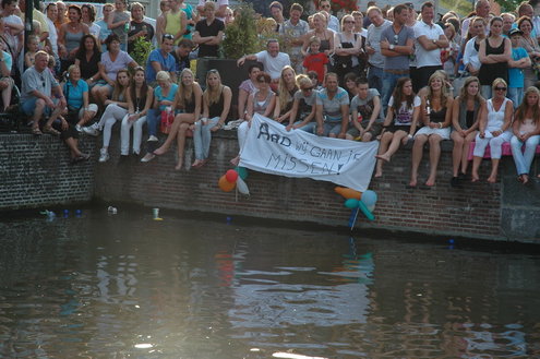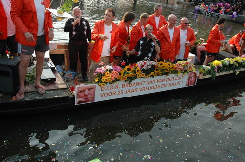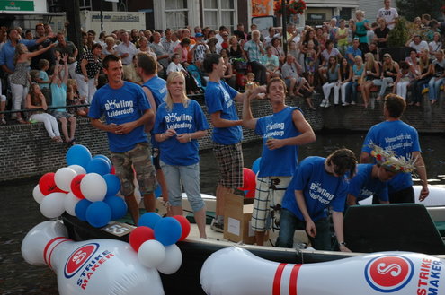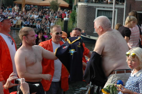 Groter en grootser dan ooit, dat was de 25e editie van de Peurbakkentocht die gisteren weer vele duizenden mensen op de been bracht. Een piratenschip, een penisplant en een wk pletterboot konden veel waardering van het publiek en de jury oogsten, maar ook lieten veel deelnemers het feit dat het de laatste keer is dat Aad van der Luit de Lakenfeesten organiseert niet ongemerkt voorbij gaan. Veel peurbakken hadden borden of spandoeken waarop Aad werd bedankt voor een kwart eeuw Leidse Lakenfeesten. Na de prijsuitreiking zette jury-voorzitter Menno Smitsloo een ‘Aadje bedankt, Aadje bedankt’ in dat massaal werd overgenomen. Van der Luit hield het daarbij bijna niet droog. Overigens blijft hij als presentator voorlopig nog wel bij de Peurbakkentocht betrokken.