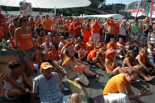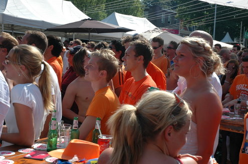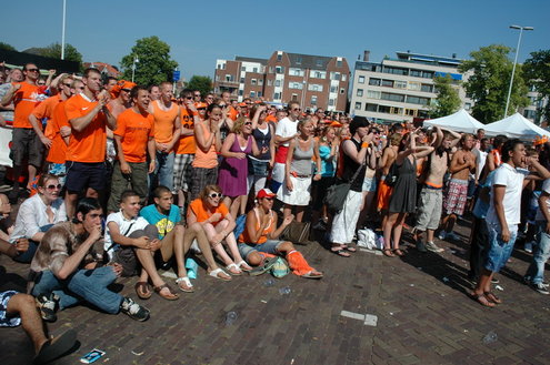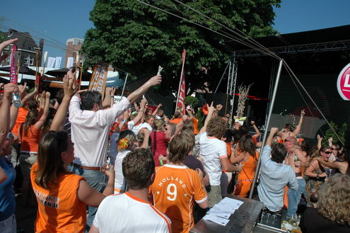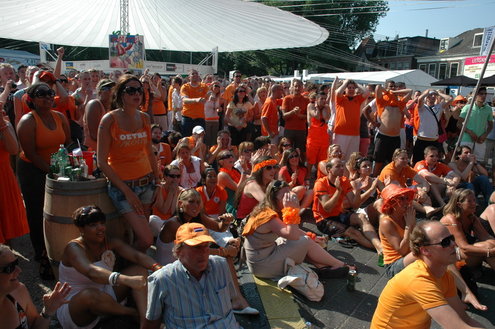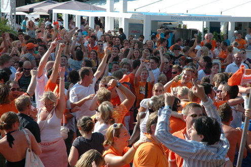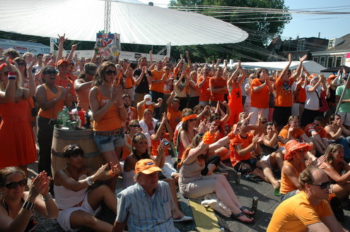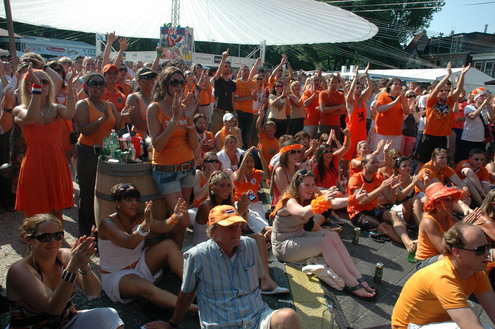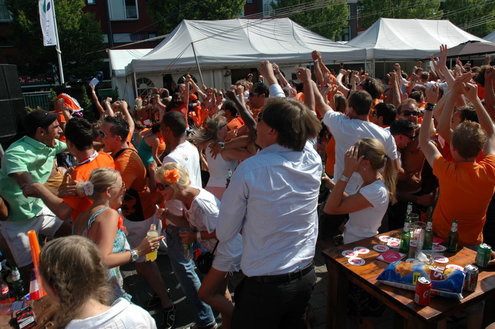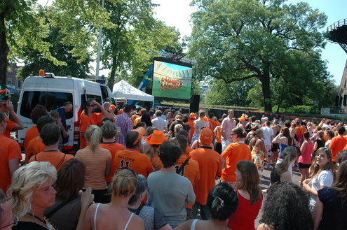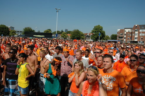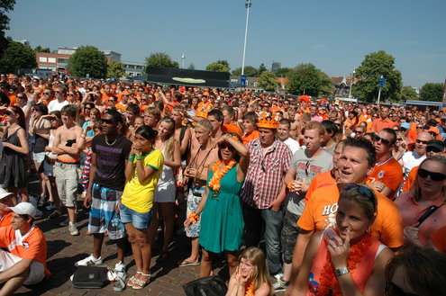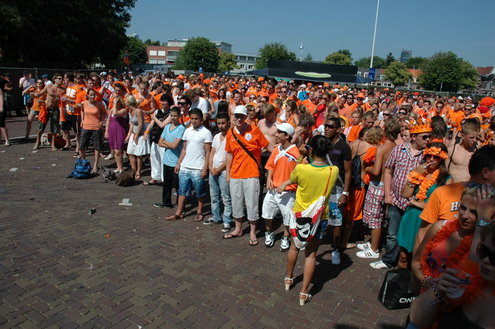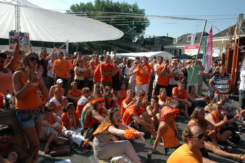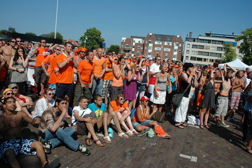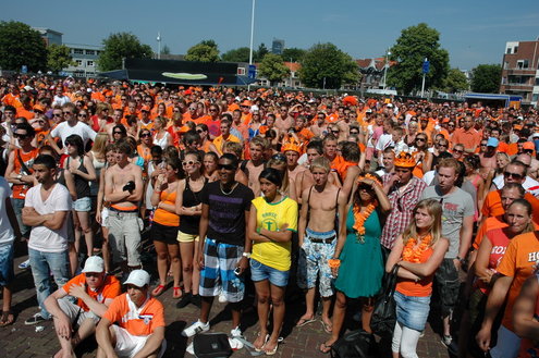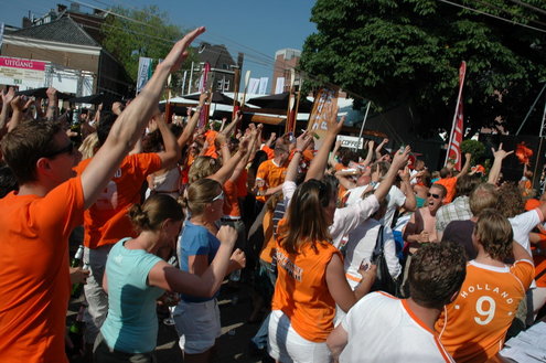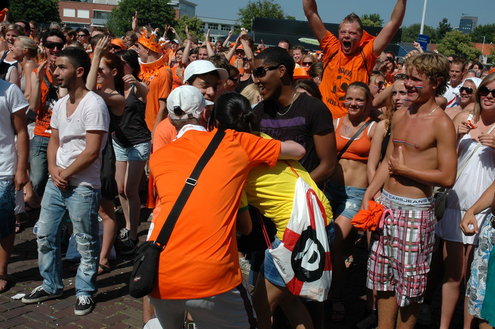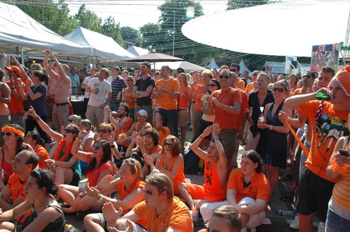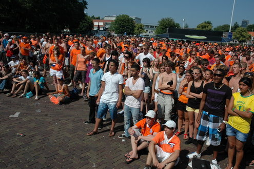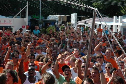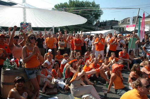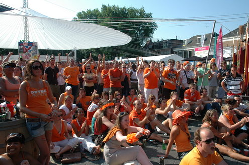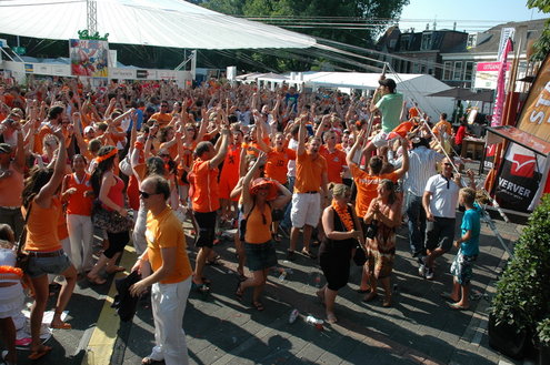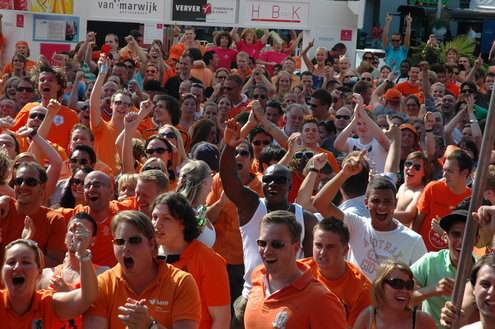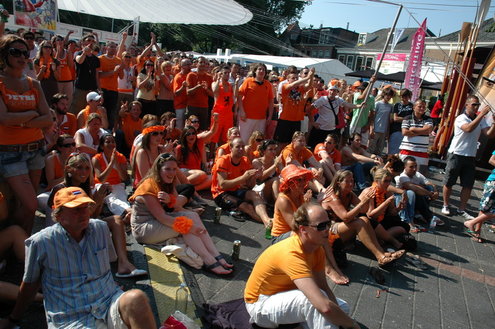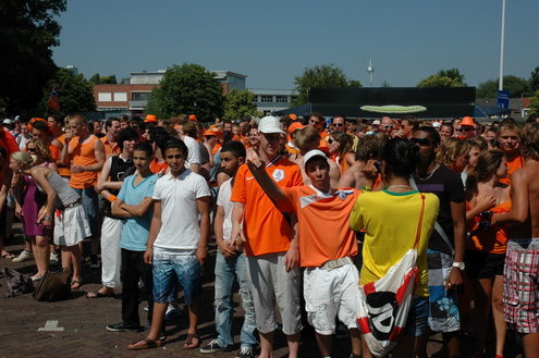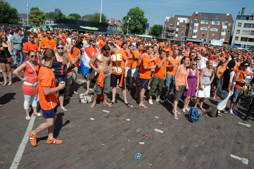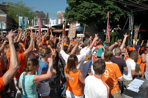 Ook bij Leiden Culinair werd de wedstrijd massaal gevolgd. Na het eindsignaal hoste een uitzinnige menigte er op los. (Foto's: Chris de Waard).