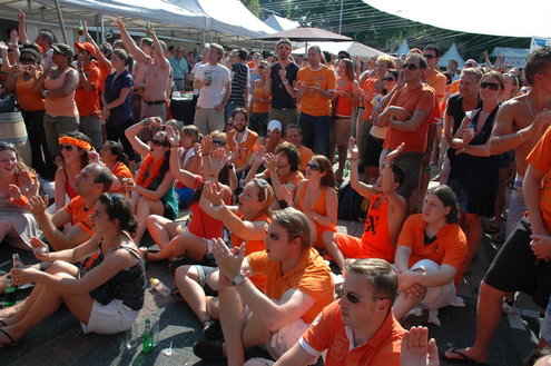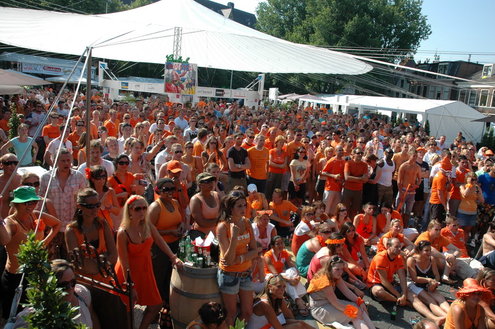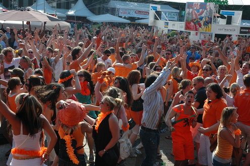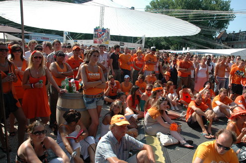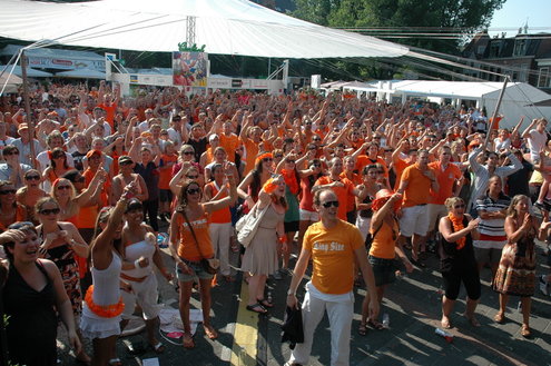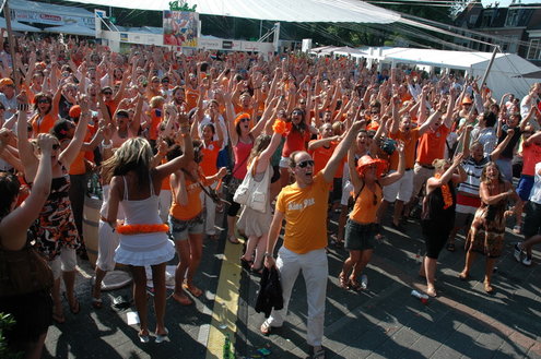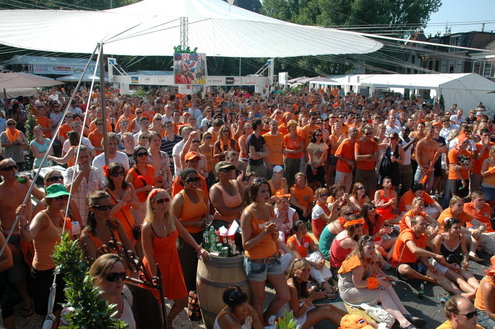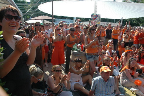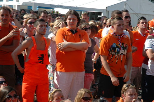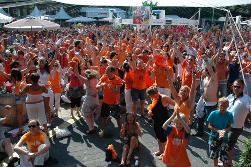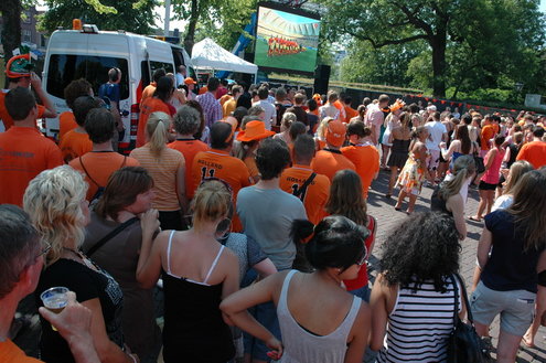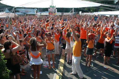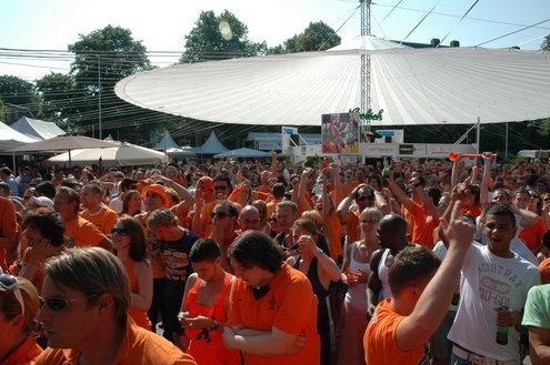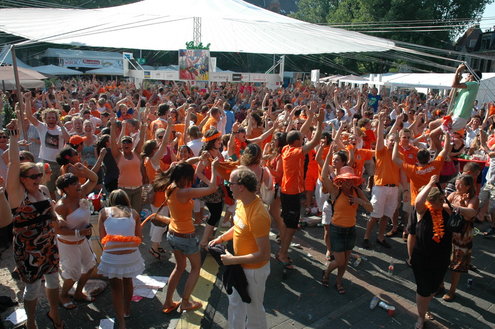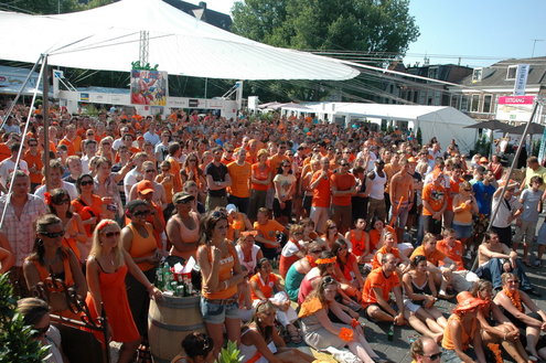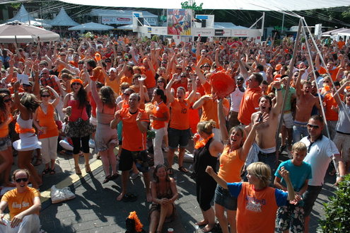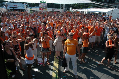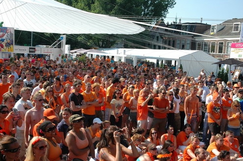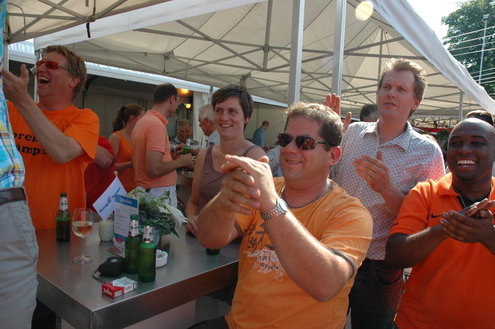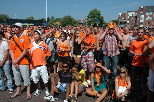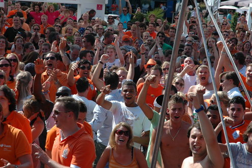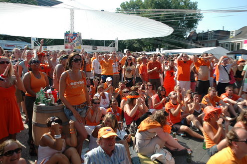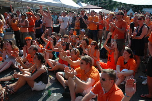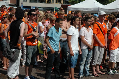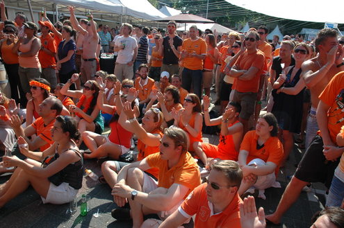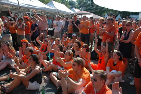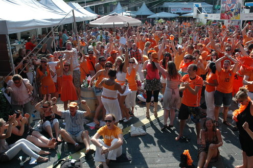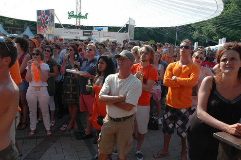 Ook bij Leiden Culinair werd de wedstrijd massaal gevolgd. Na het eindsignaal hoste een uitzinnige menigte er op los. (Foto's: Chris de Waard).