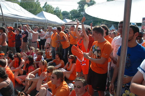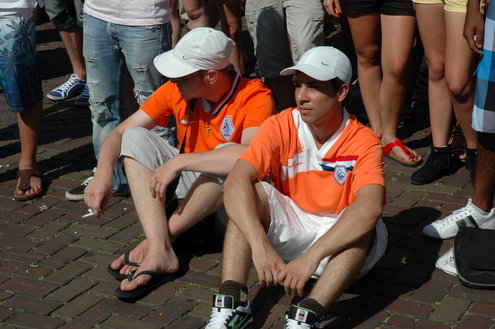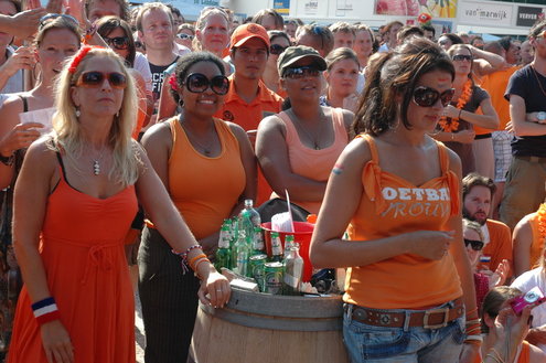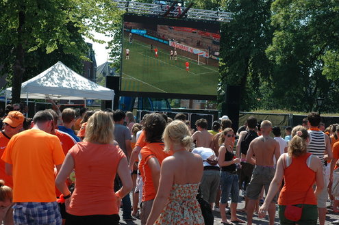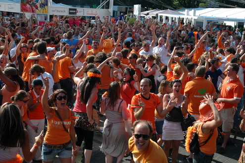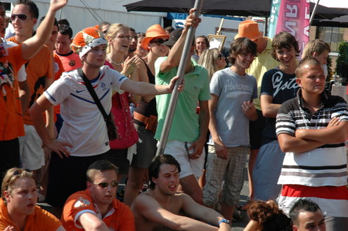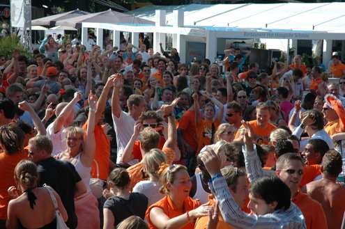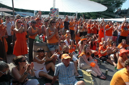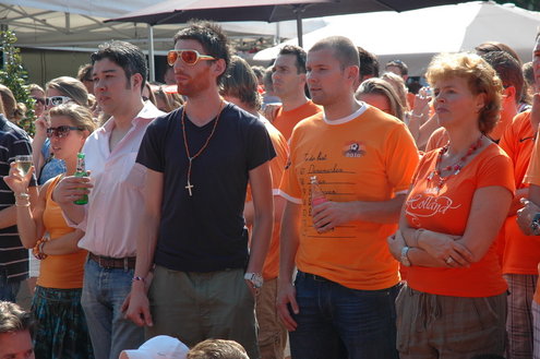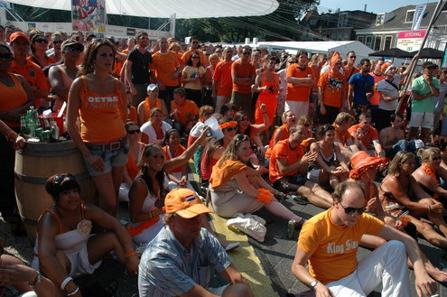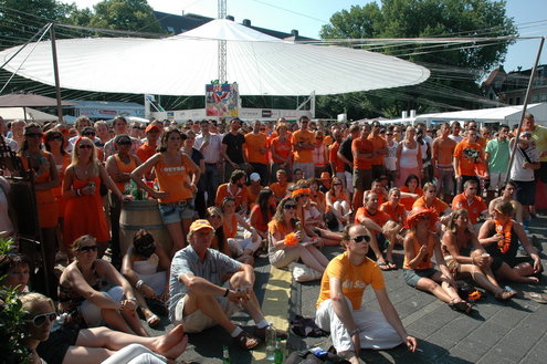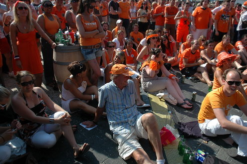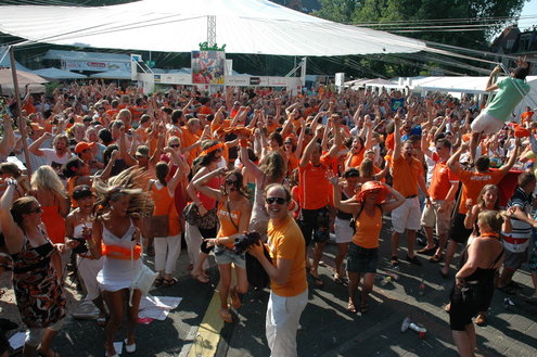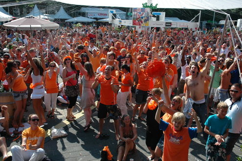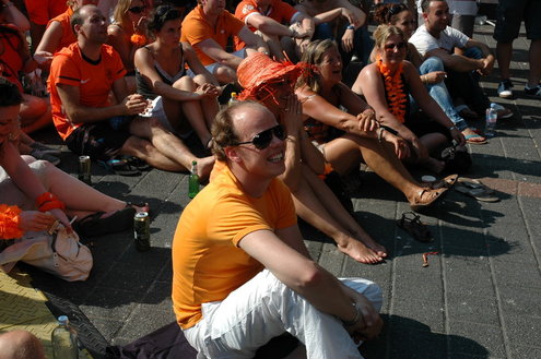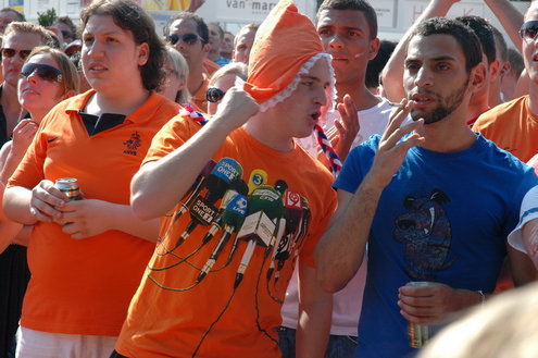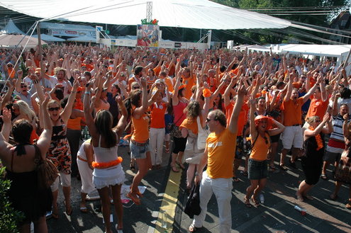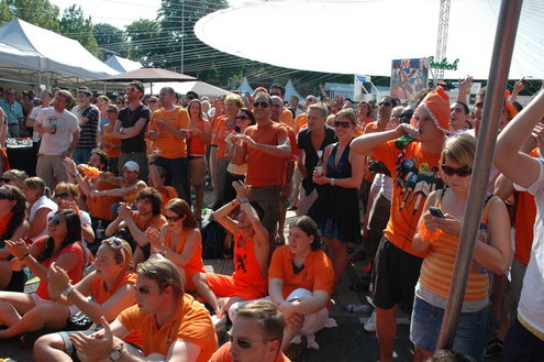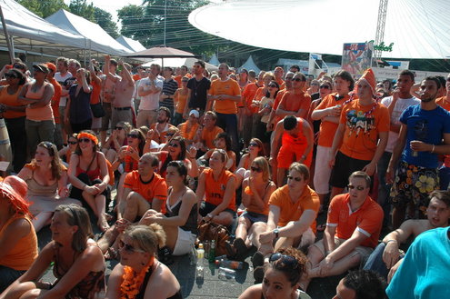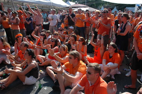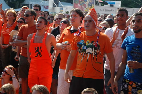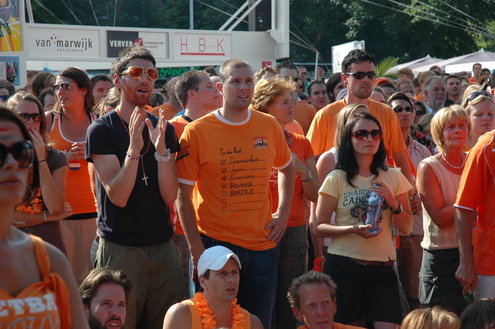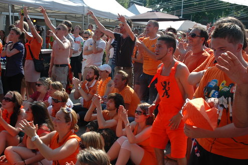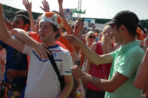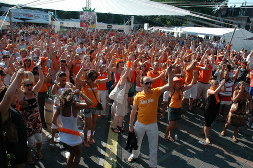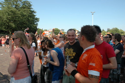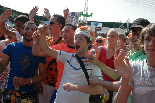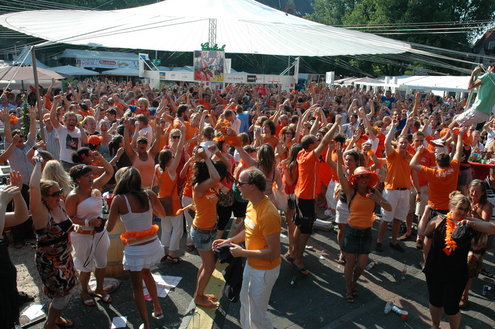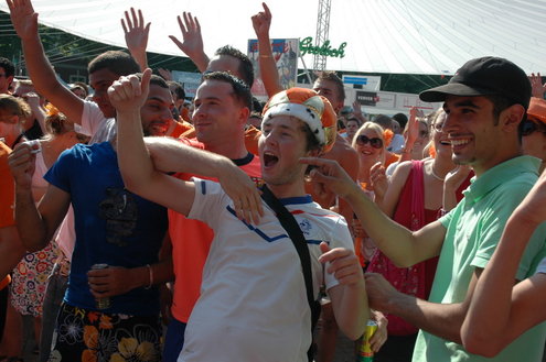 Ook bij Leiden Culinair werd de wedstrijd massaal gevolgd. Na het eindsignaal hoste een uitzinnige menigte er op los. (Foto's: Chris de Waard).