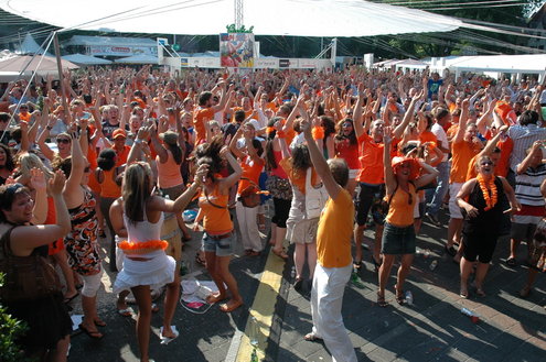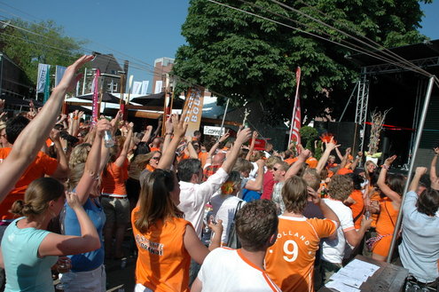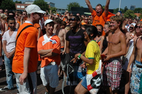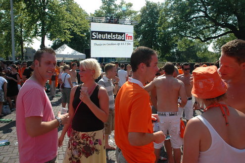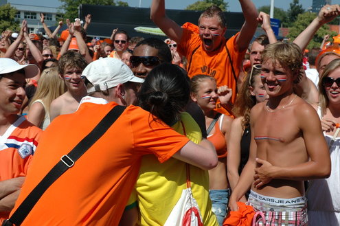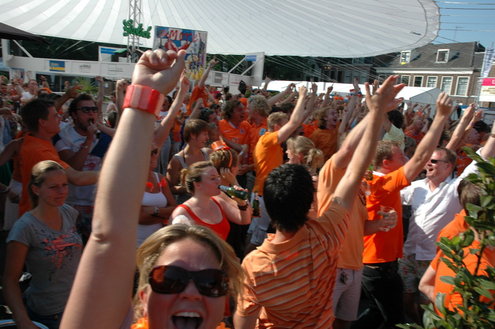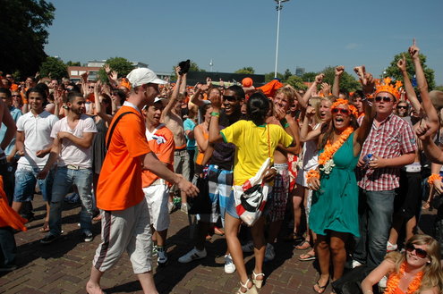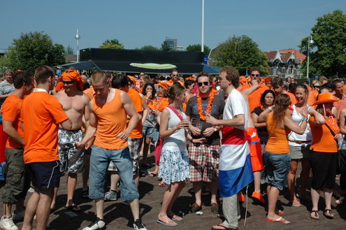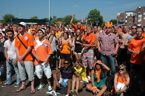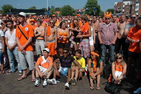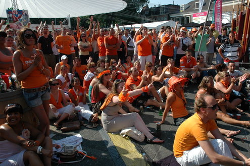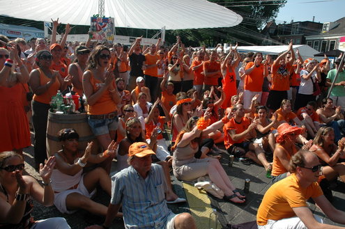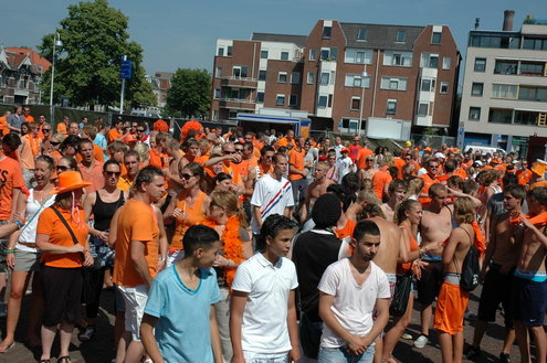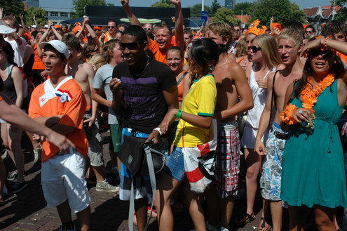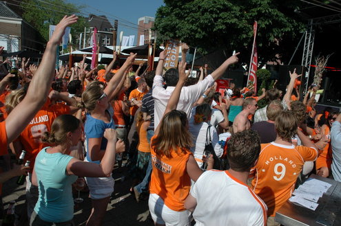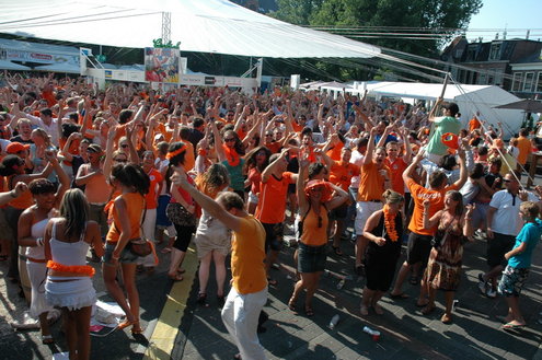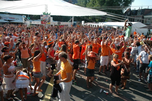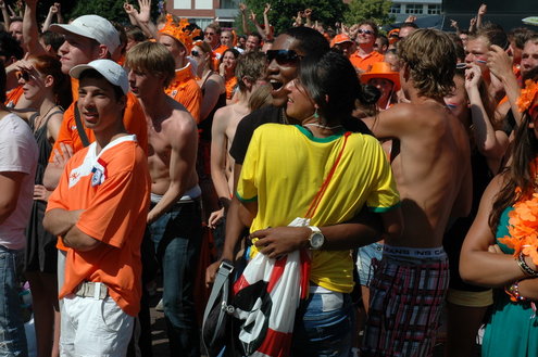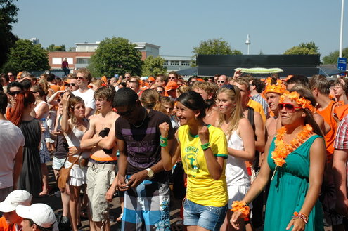 Uitzinnig! Dat is het enige woord dat de menigte kan omschrijven die zojuist getuige was van de slachtpartij van het Nederlands elftal tegen favoriet Brazilie. In duizenden Leidse huiskamers, honderden straten, tientallen kroegen en een aantal pleinen ging Leiden uit zijn of haar dak na de kletterende overwinning waarbij Oranje zich plaatste voor de halve finale in het WK door Brazilie met 2-1 te verslaan.