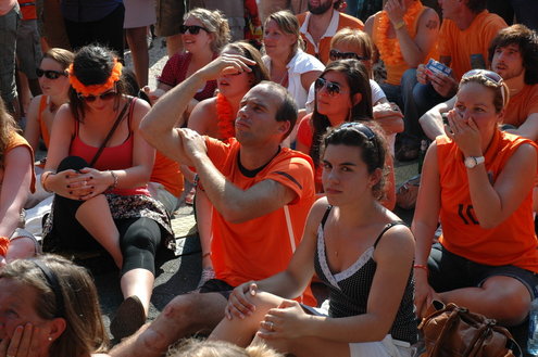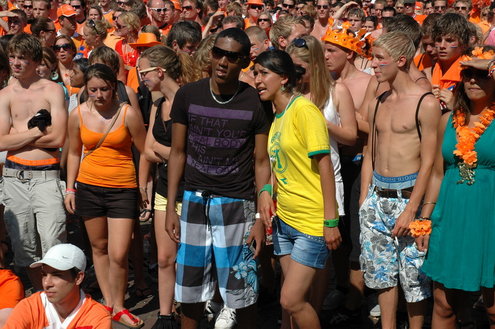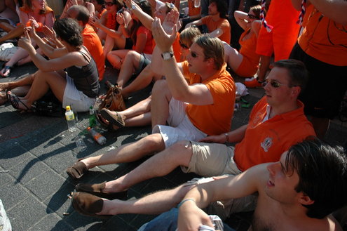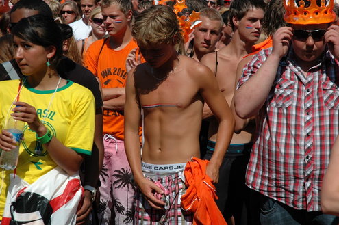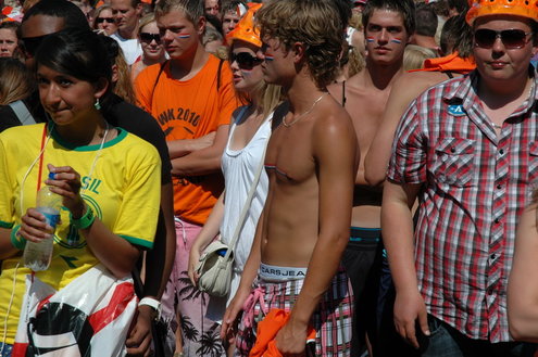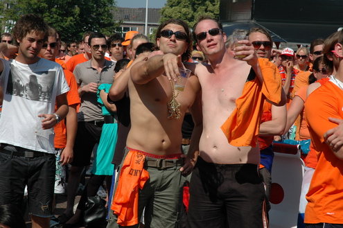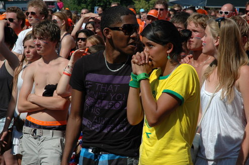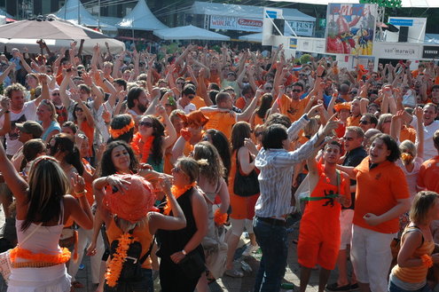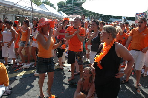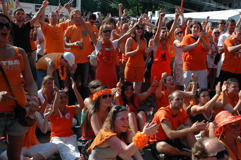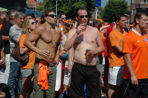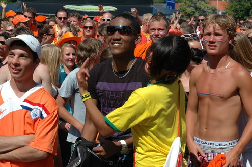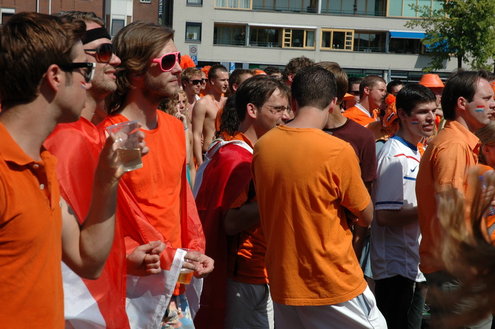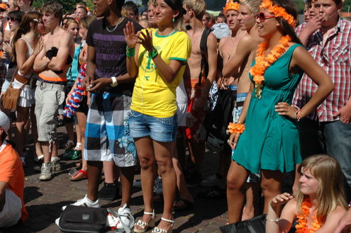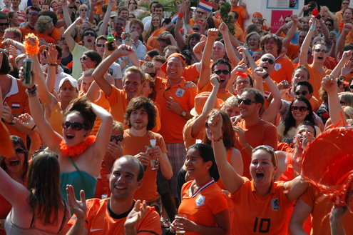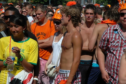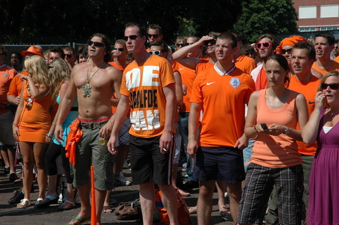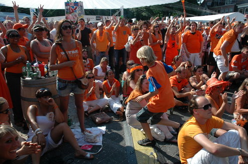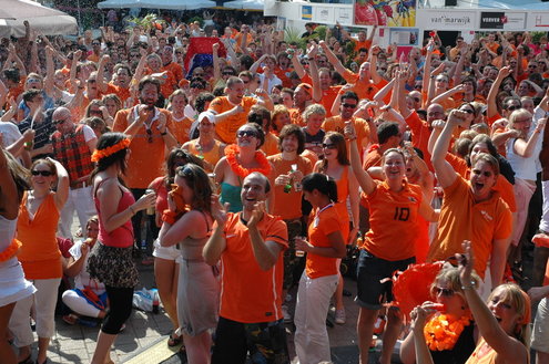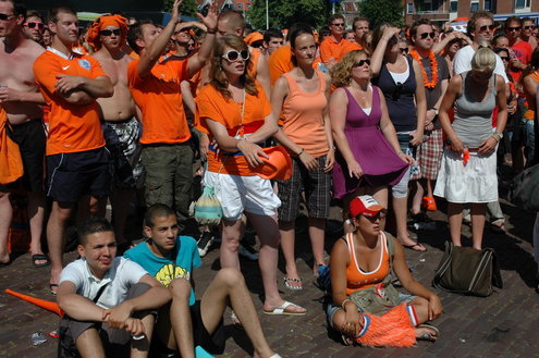 Uitzinnig! Dat is het enige woord dat de menigte kan omschrijven die zojuist getuige was van de slachtpartij van het Nederlands elftal tegen favoriet Brazilie. In duizenden Leidse huiskamers, honderden straten, tientallen kroegen en een aantal pleinen ging Leiden uit zijn of haar dak na de kletterende overwinning waarbij Oranje zich plaatste voor de halve finale in het WK door Brazilie met 2-1 te verslaan.