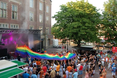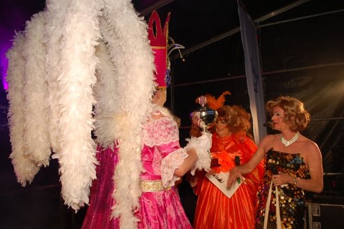 Gisteravond vond op het Stadhuisplein de ‘Diva Queen of the Year verkiezing plaats. Negen vooral bontgekleurde ‘deelneemsters’ imponeerden de jury én het publiek met wervelende muzikale shows, zang en dans. De ‘dames’ waren via landelijke voorrondes geselecteerd. De presentatie werd weer schitterend neergezet door Christine Carrington alias Lorenzo van Beek. Op het ‘streaker-incident ‘na verliep alles goed en was het een zomerse en gezellige drukte op het plein. In de pauze gaven de bekende Alley Girls een fantastisch optreden. Na afloop traden de goeie oude Shoes op, die 25 jaar geleden, bij de eerste lakenfeesten ook al van de partij waren. De ‘good old boys’ swingden de pan uit en lieten zien , dat ze ook jongeren volop aan het dansen en zingen konden krijgen.