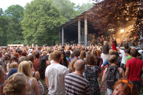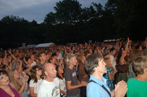 Het was de hele dag bloedheet in de Leidse Hout, waar gisteren de 29ste editie van Werfpop werd gehouden. Het mocht de pret niet drukken, want jong en oud vermaakten zich prima en zochten, waar mogelijk wat schaduw op. In het Theehuis vond een minifestivalletje plaats, waar onder andere winnaar van het Gouden Pet festival Holy Water optrad en Men in Blues. Bij het hoofdpodium en het middenveld was het een drukte van belang en genoot iedereen van de muziek, de diverse acts, de vele stalletjes en van elkaar. Zo nu en dan keek men wat angstig naar de steeds dikker wordende wolkenlucht. Tijdens het laatste nummer van de populaire groep Moke, die weer een geweldige act neerzette, begon het te druppelen en bij het tweede nummer van de Jeugd van Tegenwoordig barstte de bui echt los en dook het publiek onder paraplu's en stukken plastik om toch maar niets te hoeven missen. Het was weer een geweldig festival, dat zowel door de muziek van de Belgische Beatbasterds The Subs als door de natuur knallend werd afgesloten. Meer info: www.werfpop.nl