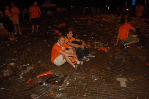 De politie Hollands Midden heeft na de WK finale Nederland – Spanje ruim 20 aanhoudingen verricht in onze regio. Er was uit voorzorg veel extra personeel ingezet, onder andere motorrijders, bikers en hondengeleiders. Na de teleurstellende afloop vertrok het publiek massaal uit de diverse horecagelegenheden en vanaf het megascherm bij Molen de Valk, naar huis. In Leiden werden zes personen aangehouden voor vernieling, mishandeling en het niet voldoen aan een vordering van de politie. Net voor de verlenging dreigden er op de Molenwerf enkele opstootjes, die door de politie gesust werden. Verder bleef het rustig en was de stemming rondom de Beestenmarkt vooral ‘gelaten’.