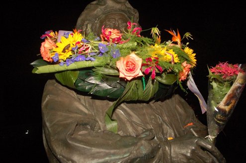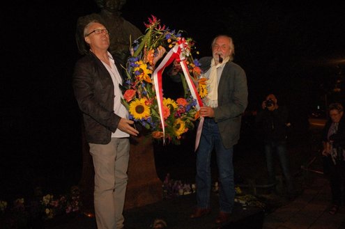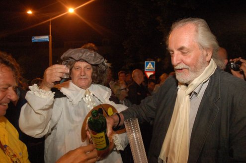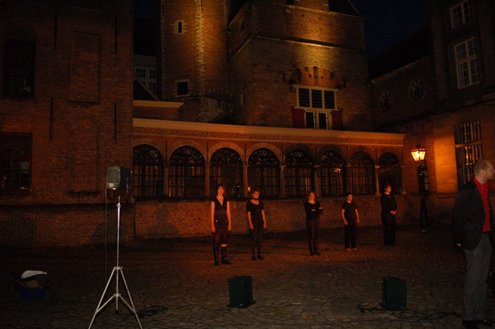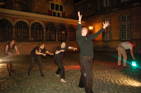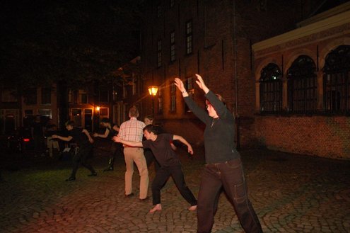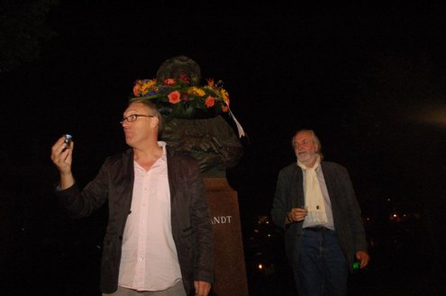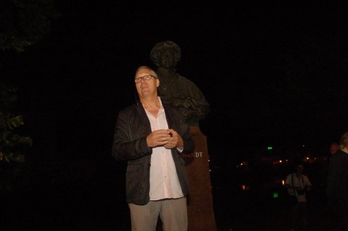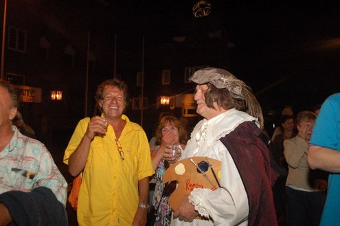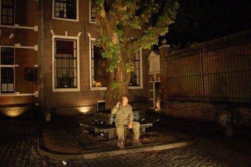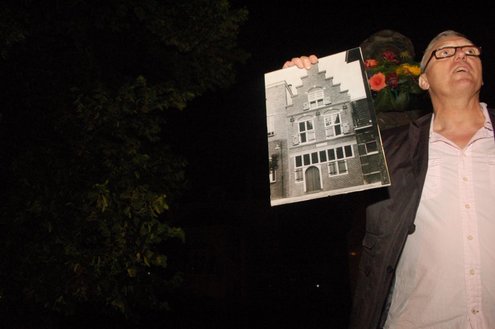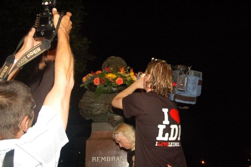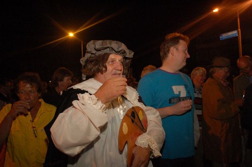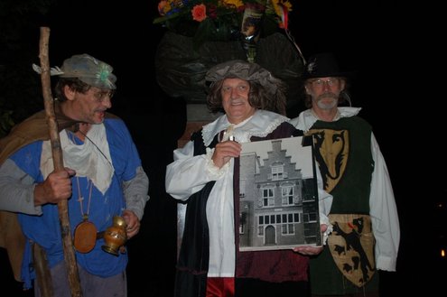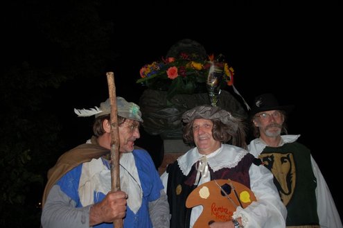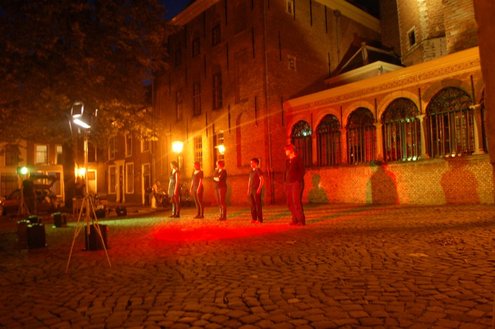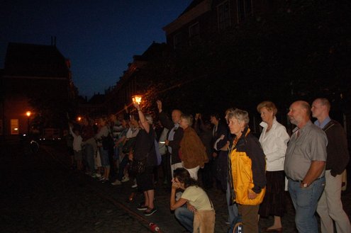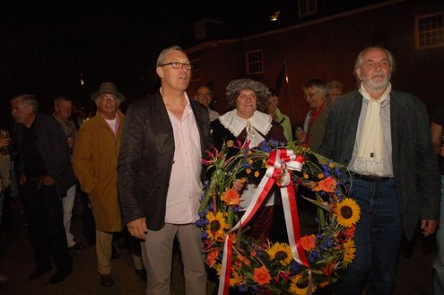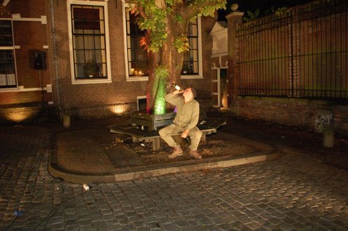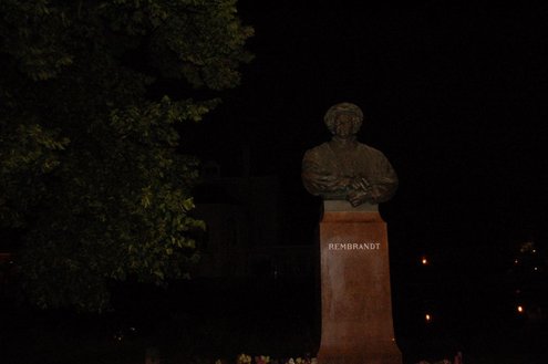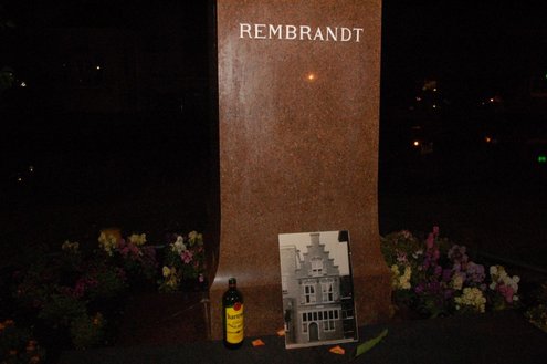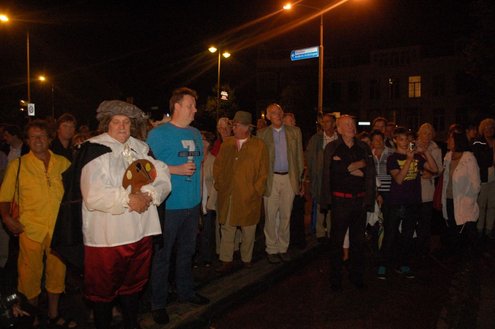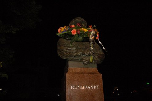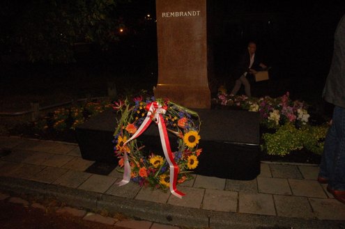 Zoals elk jaar werd gisteravond de verjaardag van Rembrandt gevierd in zijn geboortestad met de kranslegging bij het beeld op de Witte Singel. Zo'n 100 mensen liepen mee in de tocht, die langs allerlei verrassende schouwtonelen voerde. Regisseur Jan Joost Aten had een aantal cruciale momenten uit het leven van de Leidse schilder vormgegeven onder de titel 'Kies Rembrandt'. Fotograaf Emile van Aelst wandelde mee. Meer info: www.nachtvanrembrandt.nl