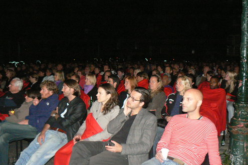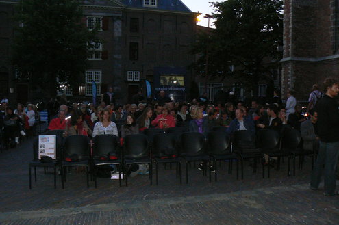 Gisteravond startte de Summer Special van het LFF op het Pieterskerkplein. Voordat de voorstelling begon, was het plein volgestroomd met belangstellenden, vaak met een eigen stoeltje onder de arm. De organisatie deelde dekens uit en de meeste mensen hadden hun eigen wijntje en hapjes meegenomen om goed in de Italiaanse sfeer te komen. Het publiek genoot gisteren van de eerste film, die op het programma stond: Otto e Mezzo van Frederico Fellini. Vanavond wordt Pranzo di Ferragosto (2008) gedraaid en morgenavond Caos Calmo (2008). De toegang is gratis. Meer info: www.leidsfilmfestival.nl.