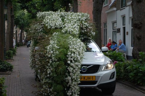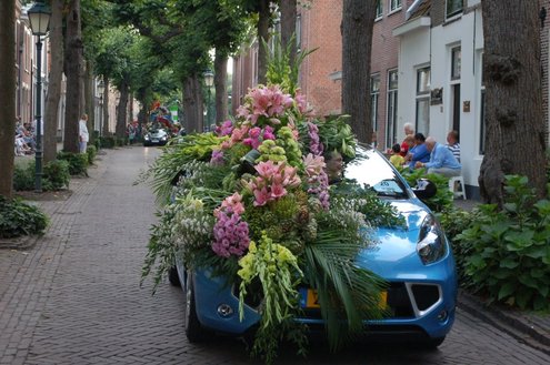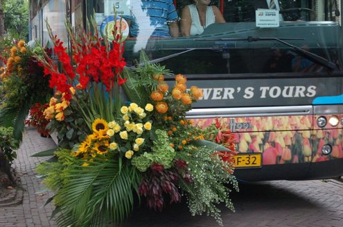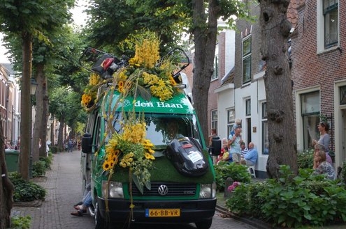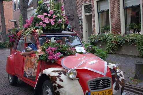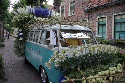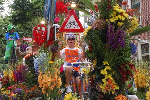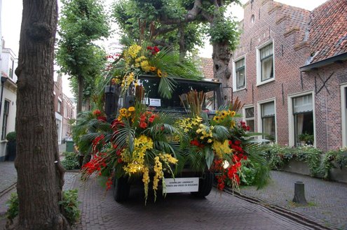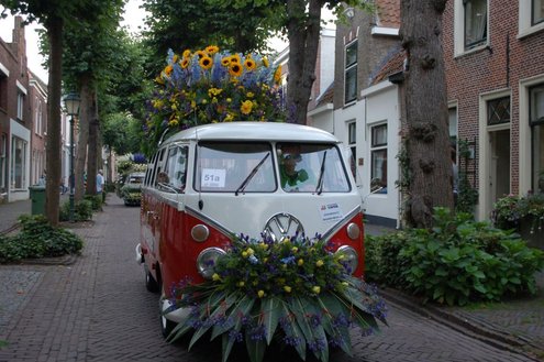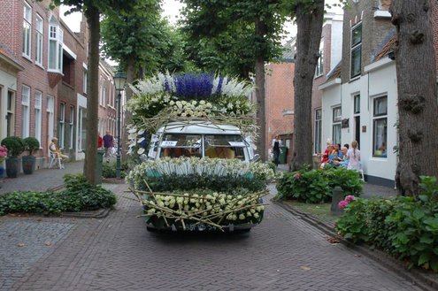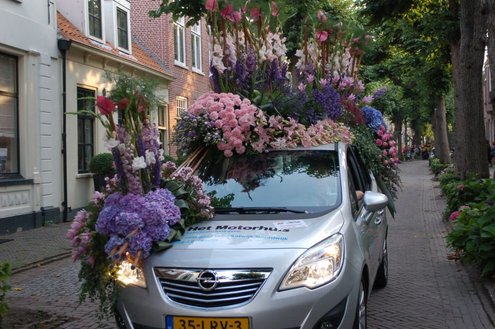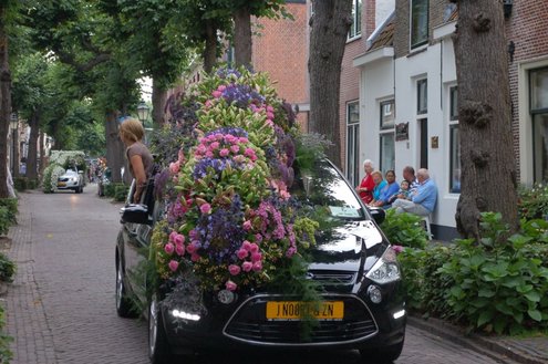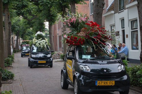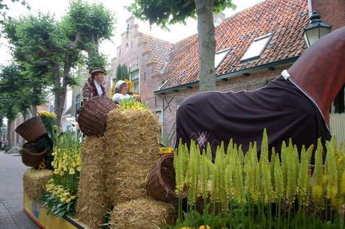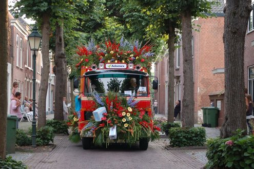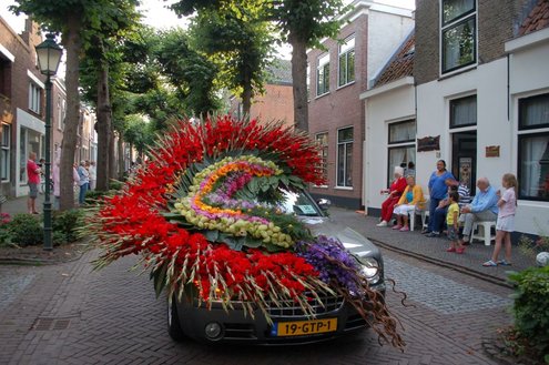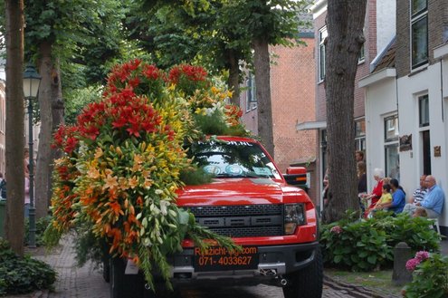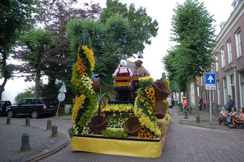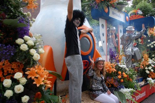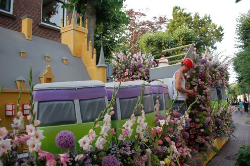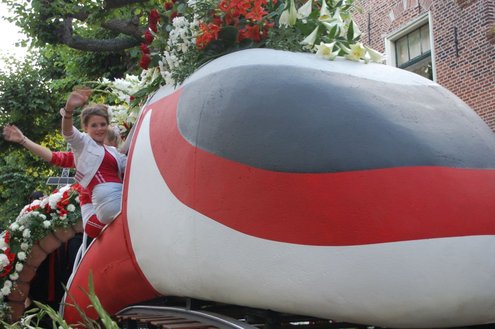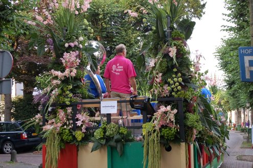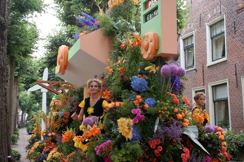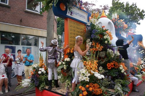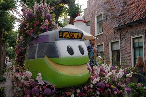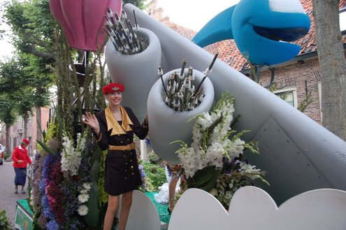 Onder het motto ''Bloemen in beweging', trok gisteren het 65ste bloemencorso door Rijnsburg, Katwijk en Noordwijk. Het thema werd uitgebeeld in allerlei soorten van reizen en voortbewegen, van vliegveldbalies tot diverse soorten vervoersmiddelen. Tot en met vandaag zijn de praalwagens en versierde auto's nog te bewonderen op de boulevard in Noordwijk. Helaas trekt dit prachtige corso niet meer door Leiden, zoals dat vroeger wel het geval was, omdat de gemeente er geen geld voor over heeft. Omroep Max heeft het corso vanaf de Voorstraat in Noordwijk gefilmd. Emile van Aelst maakte een kleurig fotoverslag.