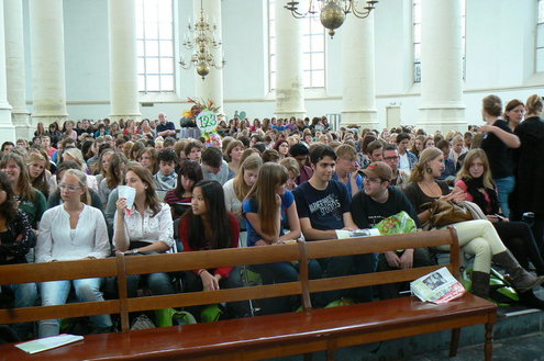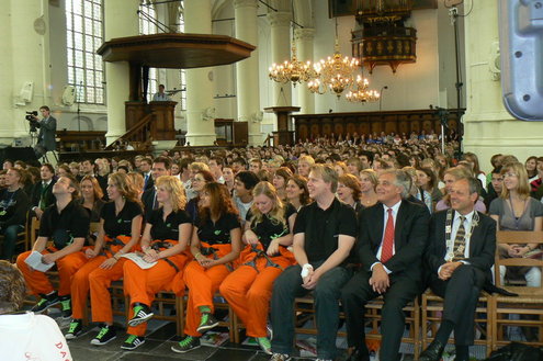Zo’n 2000 nieuwe studenten en HBO-ers, 200 meer dan vorig jaar, verzamelden zich maandag op de Beestenmarkt voor de start van de Enige Leidse Commissie Introductie Dagen EL CID die dit jaar als thema ‘Sleutel aan je toekomst’ meekreeg. Die officiële start vond plaats in de Hooglandse Kerk waar de studenten werden ontvangen door Rector Magnificus Paul van der Heijden en burgemeester Henri Lenferink.