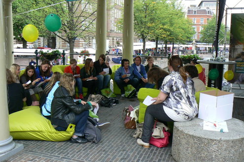 Na het officiële gedeelte was er op het Stadhuisplein en de Nieuwe Rijn een uitgebreide informatiemarkt waar tal van Leidse instellingen zich presenteerde aan de nieuwe inwoners.
