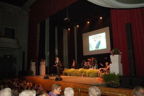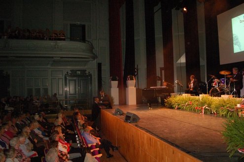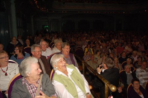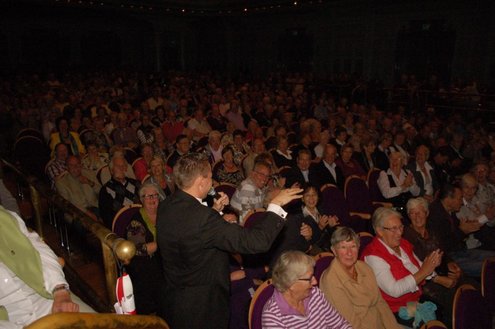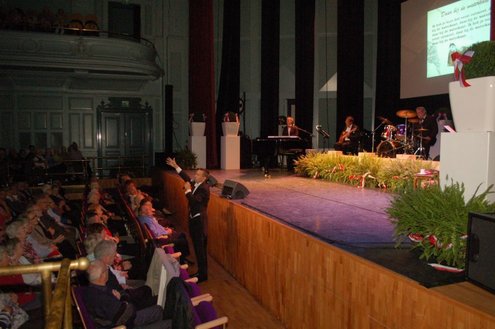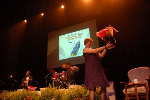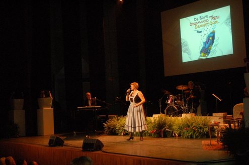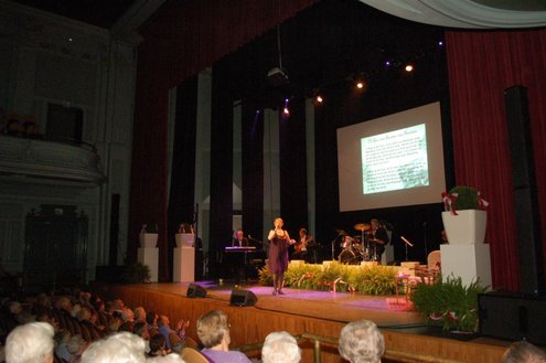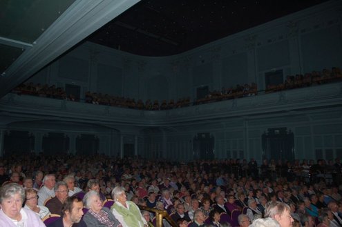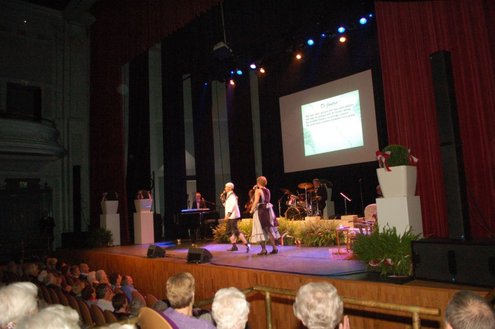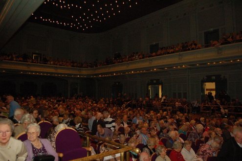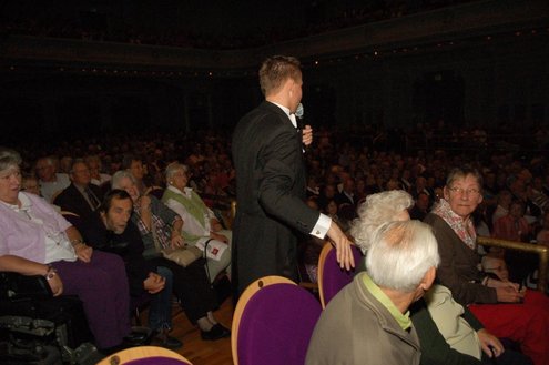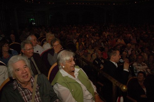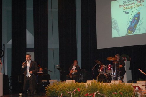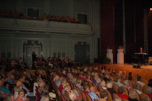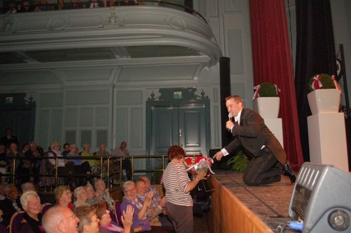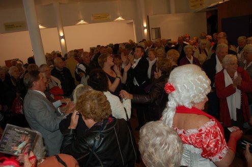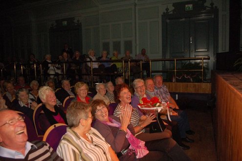 Afgelopen middag vond in de Stadsgehoorzaal een speciale muzikale middag voor senioren plaats, in aanloop naar de 3 oktoberfeesten. Met de titel: ‘De Bonte Dinsdagavond Trein’ werden bekende liedjes van vroeger gepresenteerd door Chiel van Praag en Michael van Hoorne. Zo werd er enthousiast meegezongen met “In de bus van Bussum naar Naarden …” en “Op een mooie Pinksterdag….” En natuurlijk ontbraken de bekende liedjes van Willie en Willeke niet, evenals die van Toon Hermans. Het publiek had het helemaal naar de zin en zong uit volle borst mee. Zelfs bij het afhalen van de jassen in de garderobe ontstond een spontaan meezingfeestje, toen de artiesten nog even terugkwamen. Het was een fantastische middag, waarvan Emile van Aelst een fotoreportage maakte.