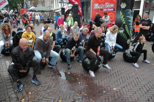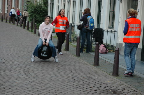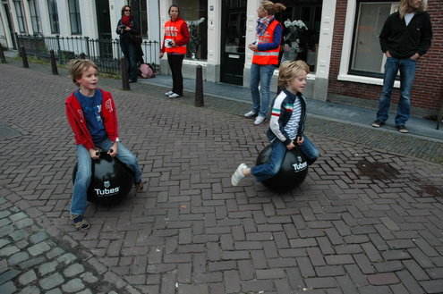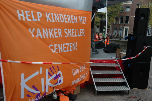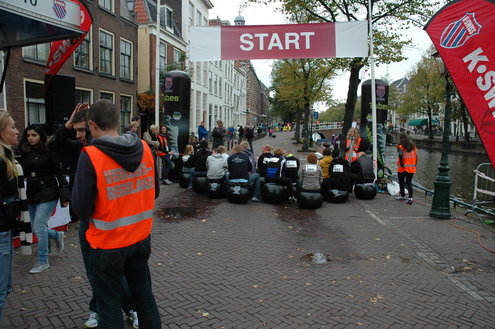 Op het Rapenburg werd zondagmiddag ter hoogte van café l'Esperance geskippybald voor het goede doel. K-Swiss, fabrikant van sportschoenen, sponsorde het evenement, waarmee geld werd ingezameld voor KiKa, dat zich inzet voor Kinderen met Kanker. (Foto's/Video: Chris de Waard).