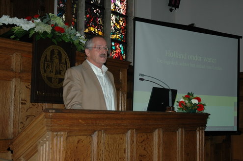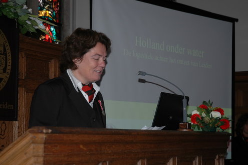 In het Groot Auditorium van het Academiegebouw van de Universiteit Leiden hield Henk den Heijer, als historicus en hoogleraar maritieme geschiedenis verbonden aan de Universiteit Leiden, de 3 oktoberlezing die dit jaar in het teken stond van (het gebrek aan) de organisatie achter het ontzet van Leiden door de Watergeuzen. De Staten van Holland besloten Leiden te ontzetten door de dijken door te prikken om zo het land onder water te zetten. Het was een wanhoopspoging, waarvan niemand wist of het zou lukken.