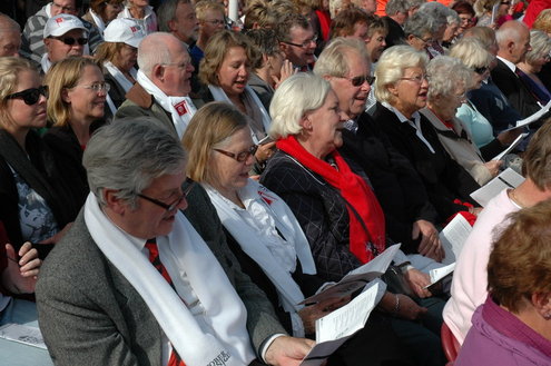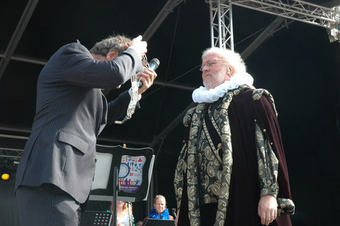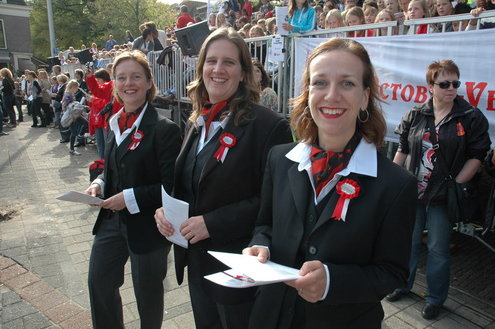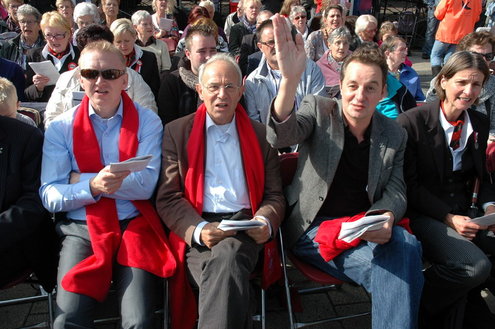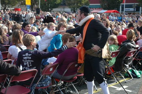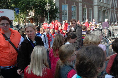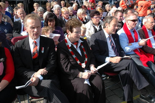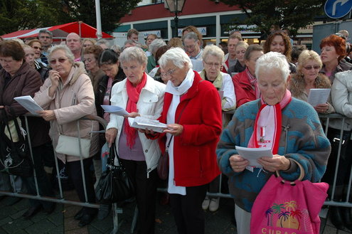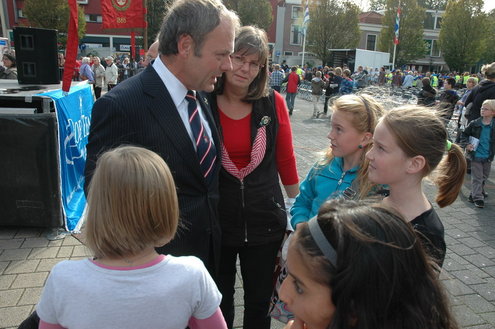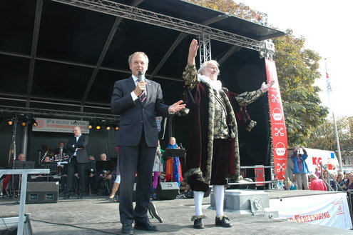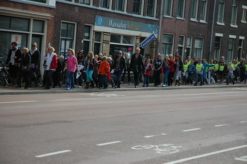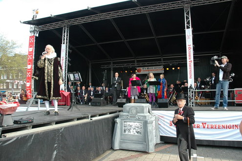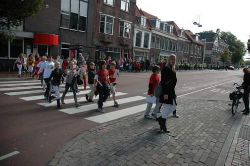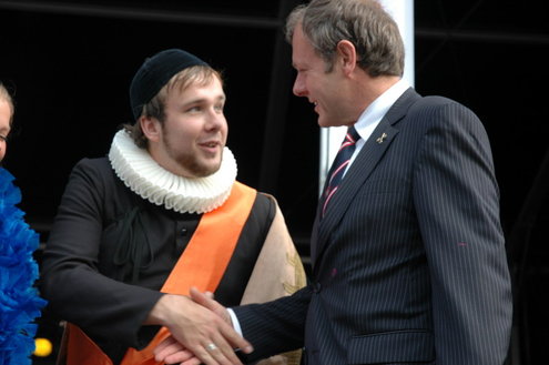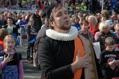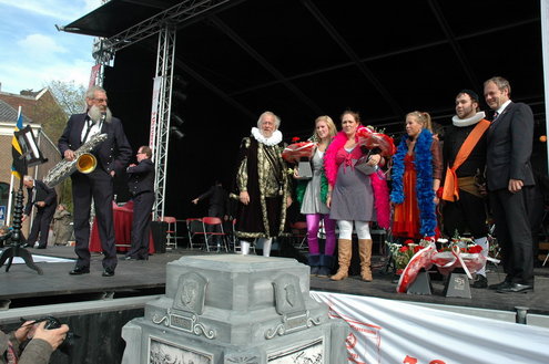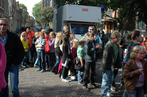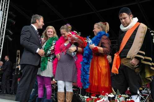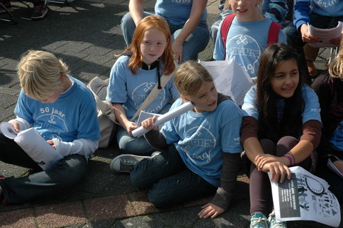 Voor de 18e keer vond vanmiddag op de Garenmarkt het Minikoraal plaats. Het evenement combineert feesten en herdenken voor basisscholieren van meer dan 50 scholen uit Leiden en omgeving. Een uur lang worden bekende liedjes uit het 3 oktober repertoire gezongen, afgewisseld met korte verhalen over de geschiedenis van Leidens Ontzet. Dit jaar was naast ‘Burgemeester Van der Werf’ ook ‘Willem van Oranje’ zelf aanwezig.