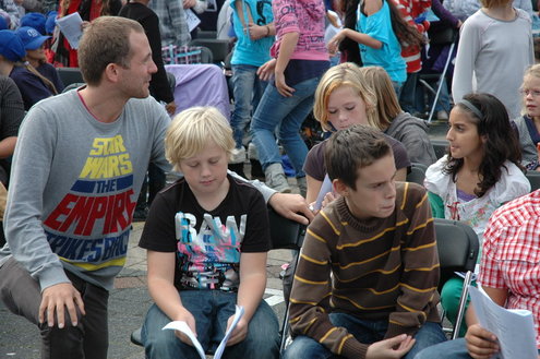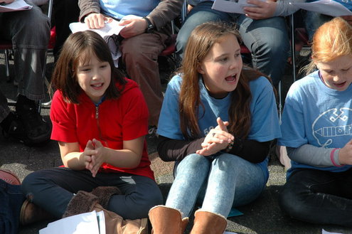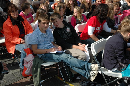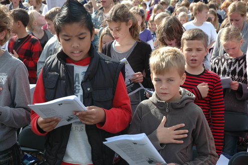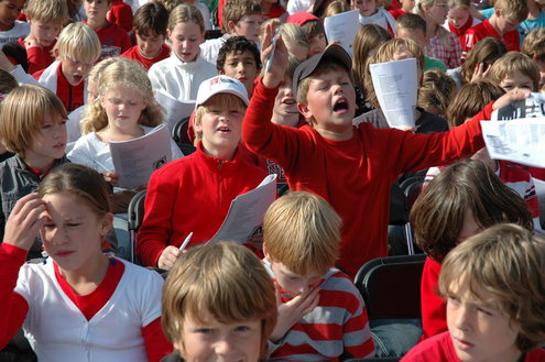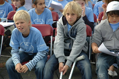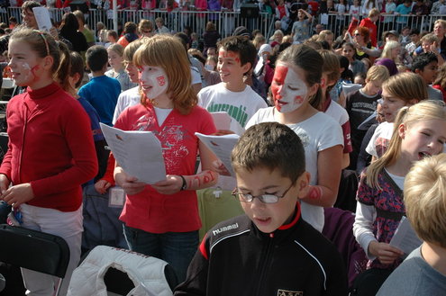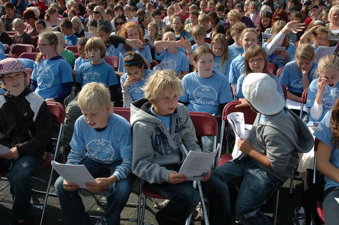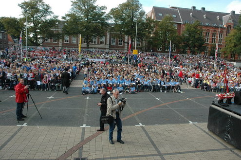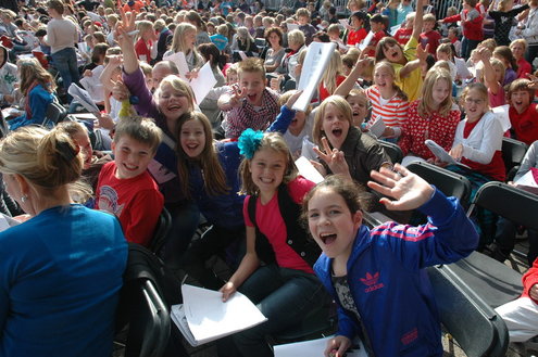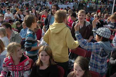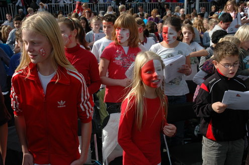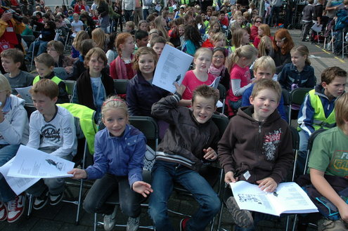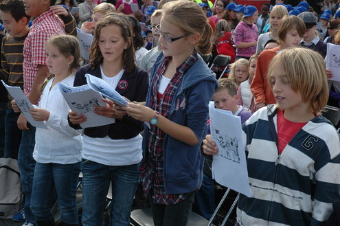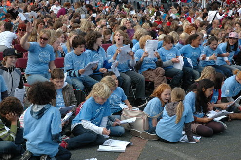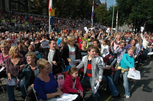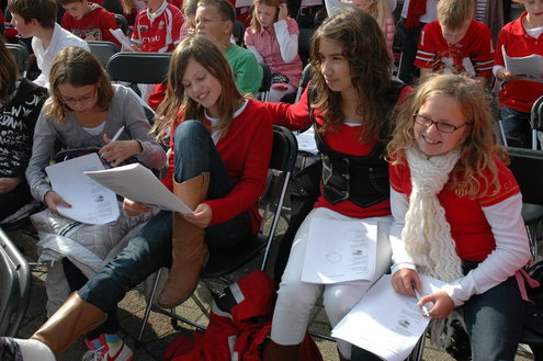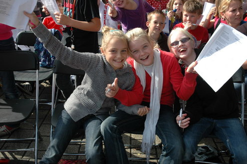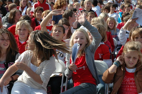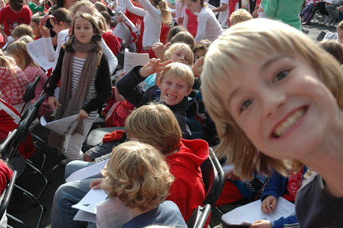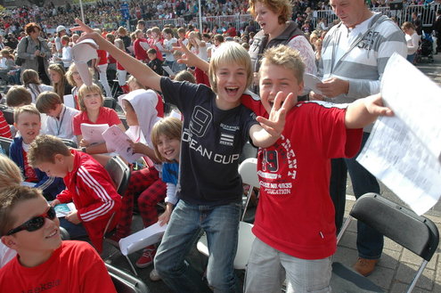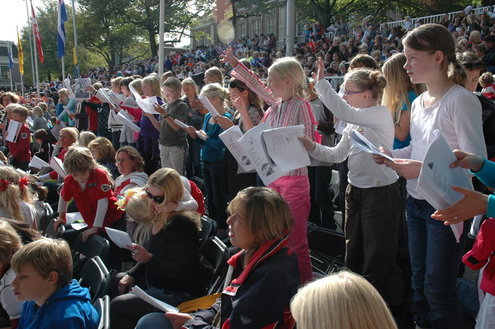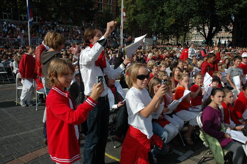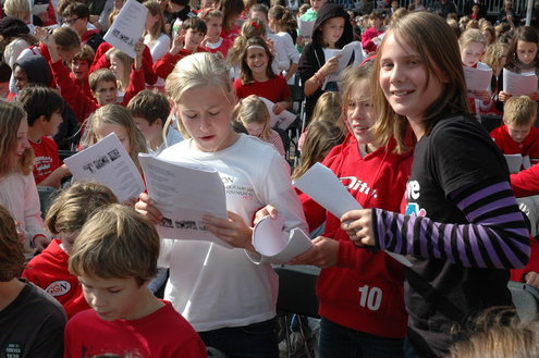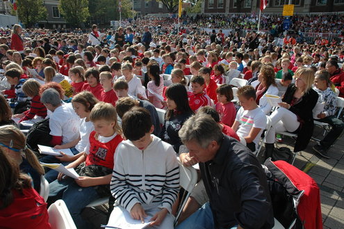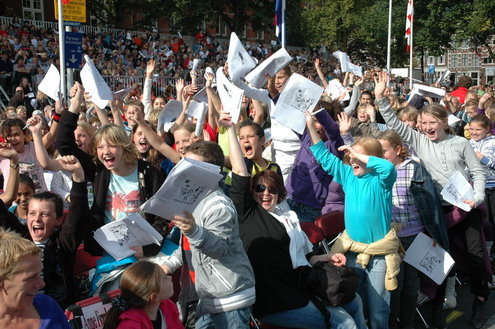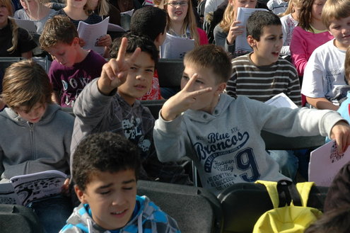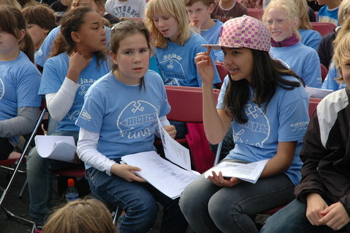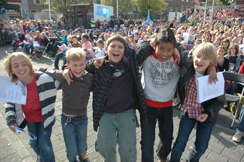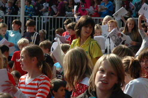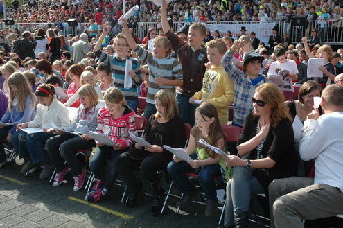 Duizenden kinderen leerden vanmiddag 'zingenderwijs' over de geschiedenis van Leidens Ontzet. Zoals elk jaar weer met heel veel lol. (Foto's: Chris de Waard).