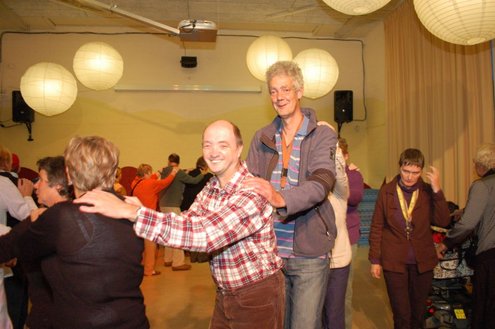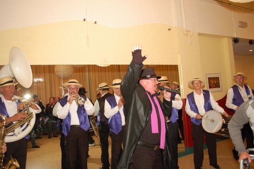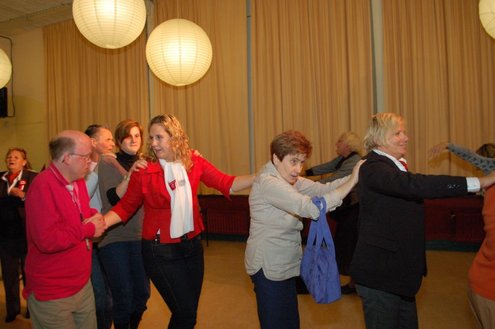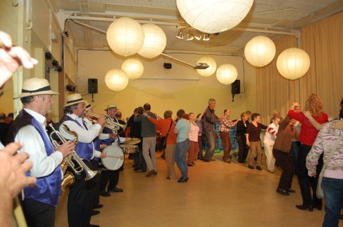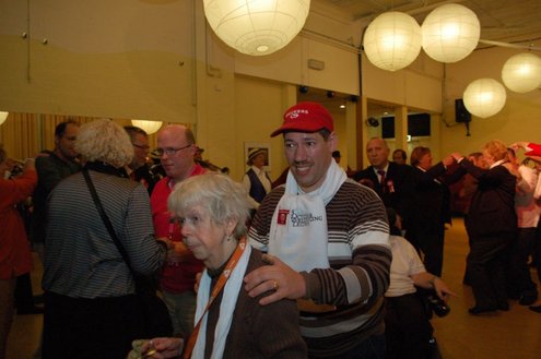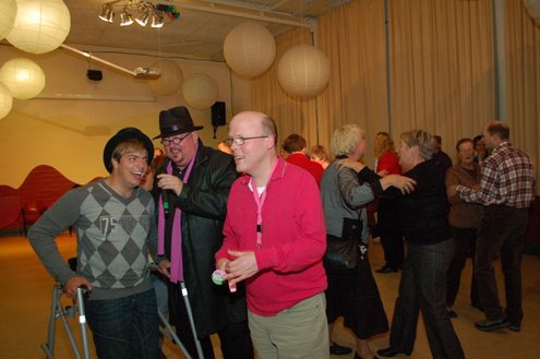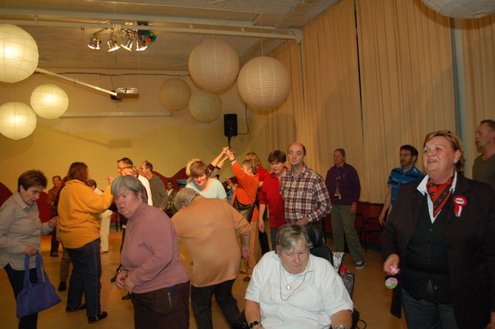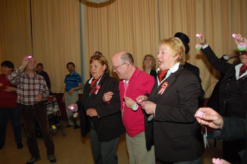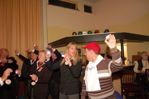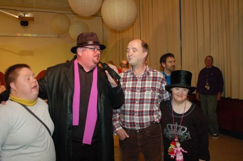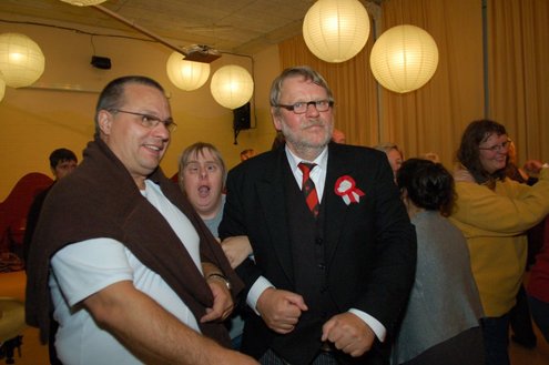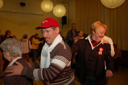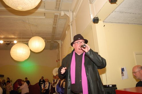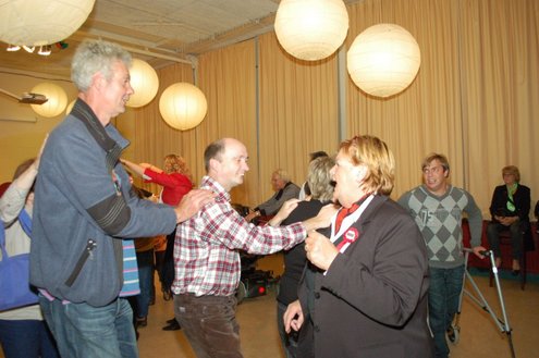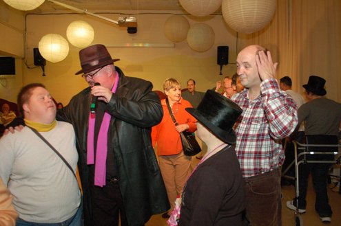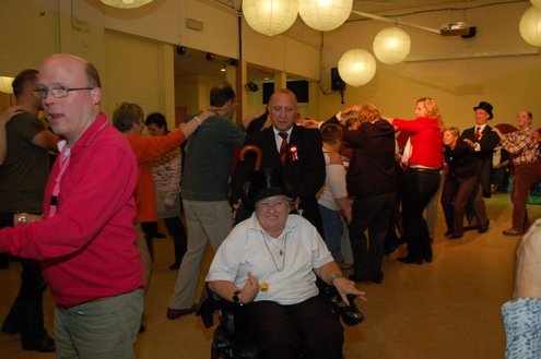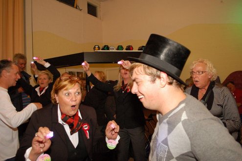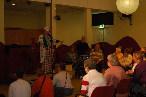 In aanloop naar de grote 3 oktoberfeesten, konden de bewoners van een aantal instellingen voor geestelijk gehandicapten gisteren al gezellig met de voetjes van de vloer. Traditiegetrouw gaat de 3october vereeniging op bezoek bij deze instellingen, met aan boord van de Touringcar van Beuk, vijf clowns en animatieorkest de Roeselaere. Chauffeur Hans bracht het feestelijk gezelschap eerst naar de Van Den Bergh stichting in Katwijk en Noordwijk. Vervolgens werden de daginstellingen de Walnoot, Thermiek en Swetterkamp bezocht. De tour eindigde bij VTV centrum club 58, waar tot 20.00 uur gefeest werd en de bewoners enthousiast de polonaise inzetten. Een André Hazes look-a-like, zorgde voor meesterlijke smartlappen en de vijf clowns kregen de lachers al snel op hun hand. Emile van Aelst fotografeerde het feestje bij VTV centrum club 58.
