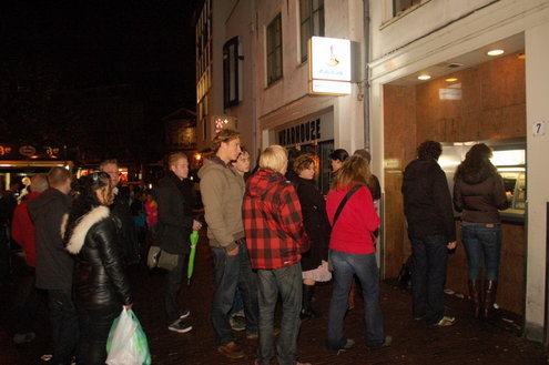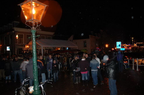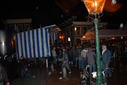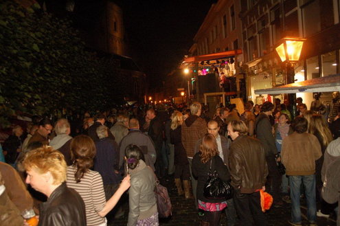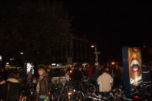 De enorme drukte in de stad leidde nergens tot echte problemen. Wel werd het bij het Stadhuisplein in de loop van de avond zo druk, dat de politie daar geen mensen meer toeliet. (Foto's: Chris de Waard en Emile van Aelst, video: Emile van Aelst / www.leidseglibber.nl).