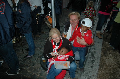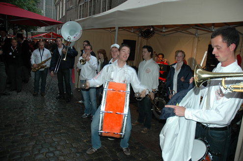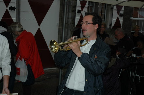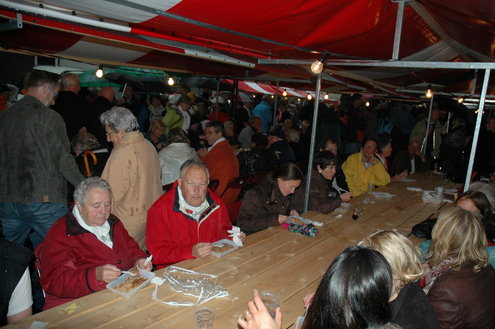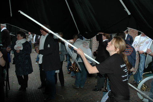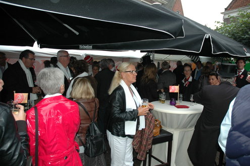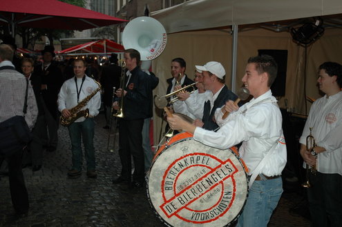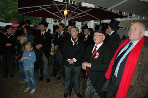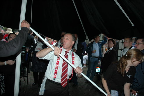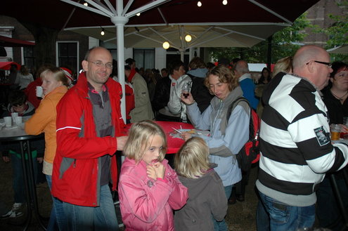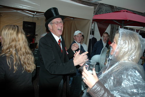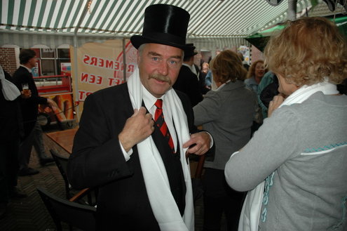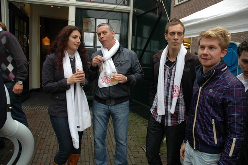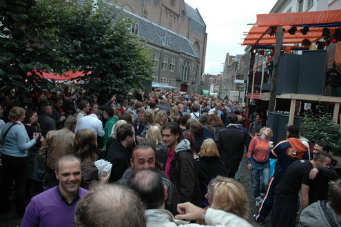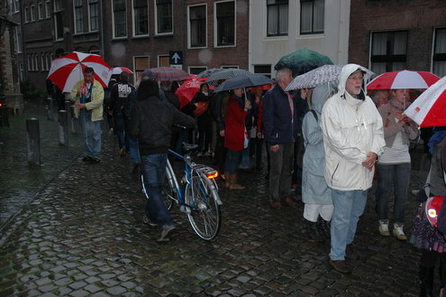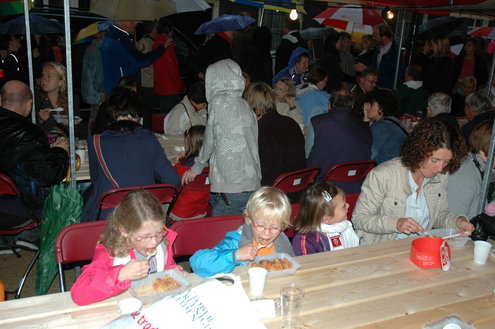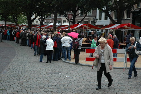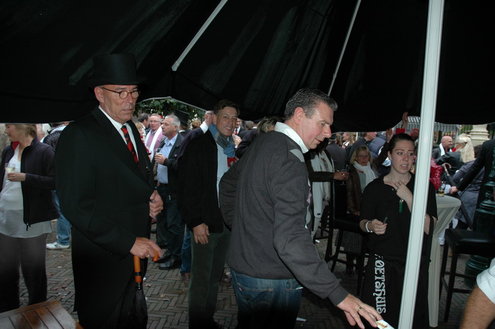 In de stromende regen genoten zaterdagmiddag duizenden Leidenaren van de Grote Hutspotmaaltijd op de Hooglandse Kerkgracht. Onder de aaneengesloten luifels was bijna geen plekje meer vrij. Onder de mensen die het slechte weer trotseerden ook veel Leidse ondernemers. Die hebben zich verenigt in het 3 Oktober Gilde dat om de hoek bij Koetshuis de Burcht een bijeenkomst hield.