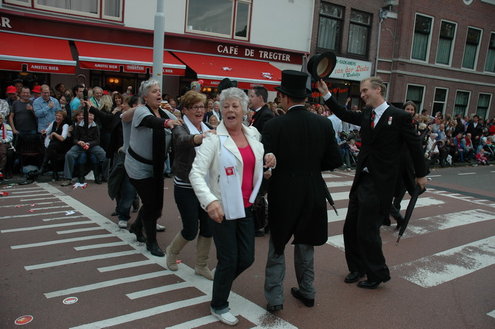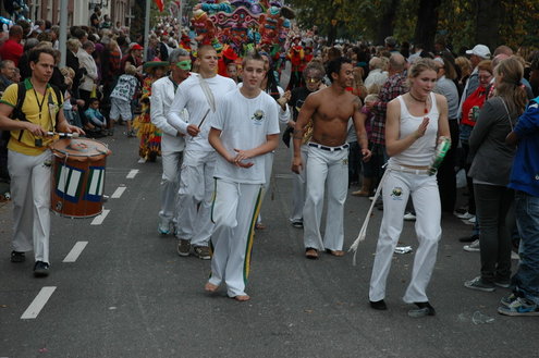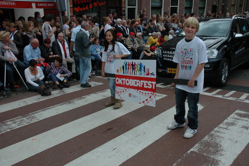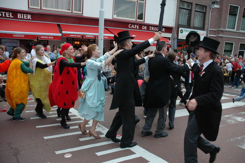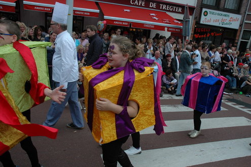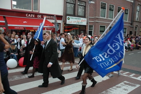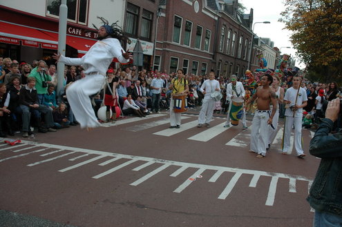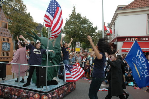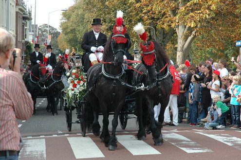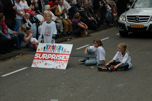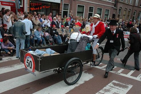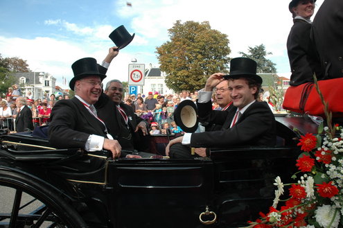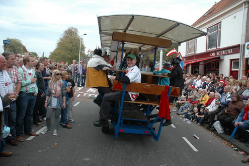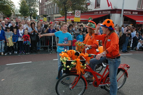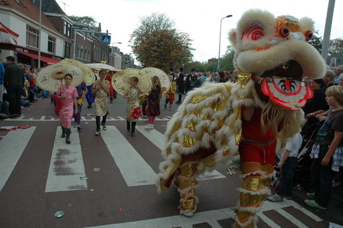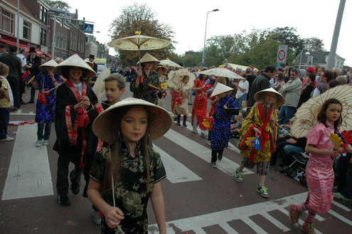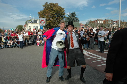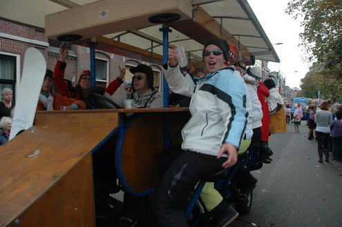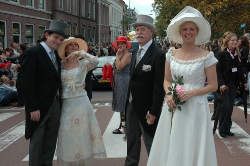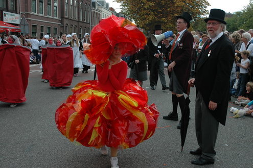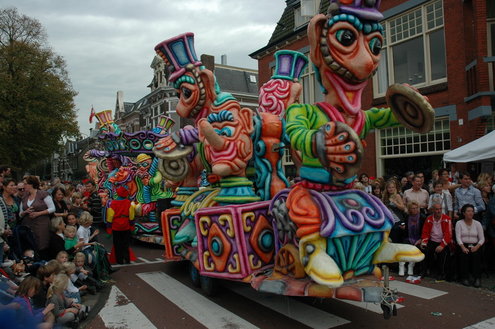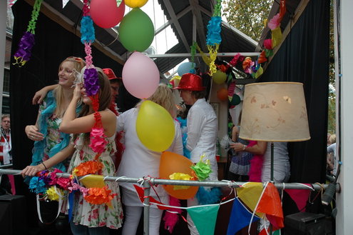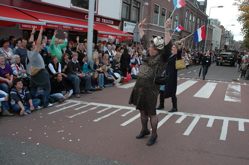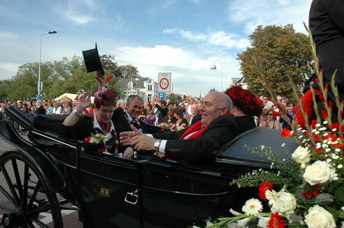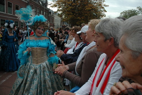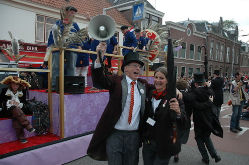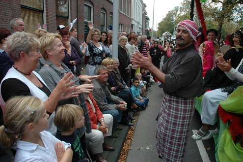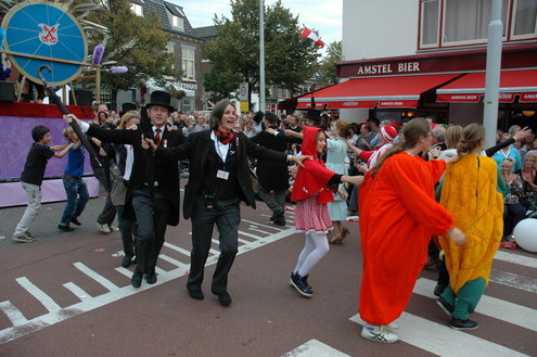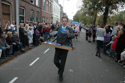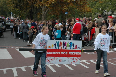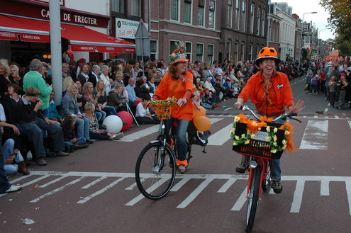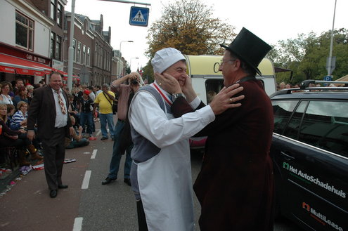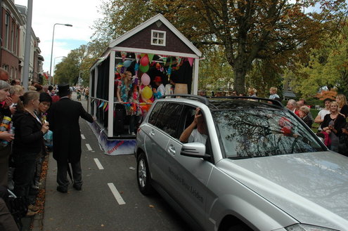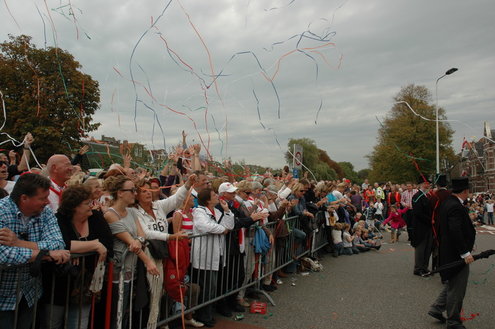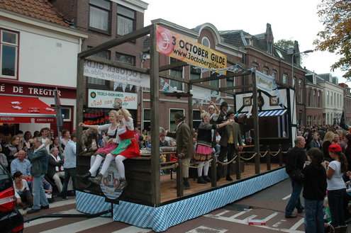Vanmiddag trok de meest feestelijke optocht sinds jaren door Leiden. dat kon ook bijna niet anders met ‘Grenzeloos Feesten’ als thema. Bruiloften, verjaardagen, bierfeesten en carnaval, het kwam vanmiddag allemaal langs. De stralende oktoberzon zorgde voor nog wat extra feestvreugde. De commissarissen van de 3 October Vereeniging zijn er normaal gesproken vooral om alles in goede banen te leiden, maar met zoveel feestelijkheden, sprongen ook zij finaal uit de band.