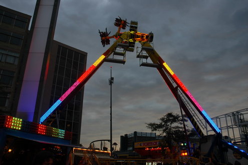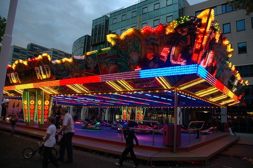 Niet nieuw op de kermis, maar wel dé bliktrekker: Around the World. Volgend jaar, als de 3 October Vereeniging tijdens een groots jubileum viert dat het de 125e keer is dat Leidens Ontzet wordt gevierd, komen er weer spectaculaire nieuwe attracties naar de Leidse kermis. Volgend jaar duurt 3 oktober trouwens nog langer. Het begint dan al op donderdag en duurt tot en met maandag 3 oktober 2011. (Foto's: Chris de Waard).
