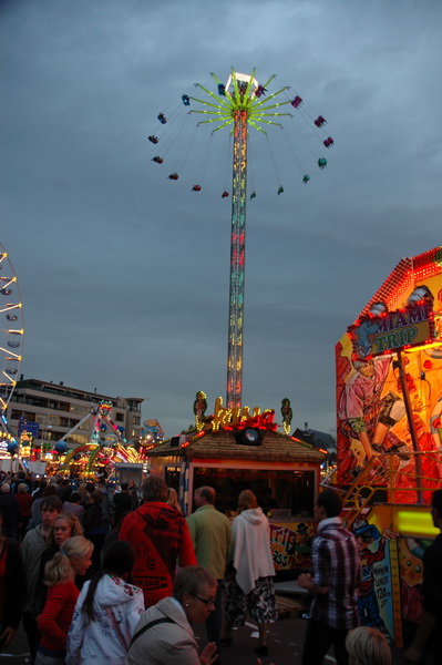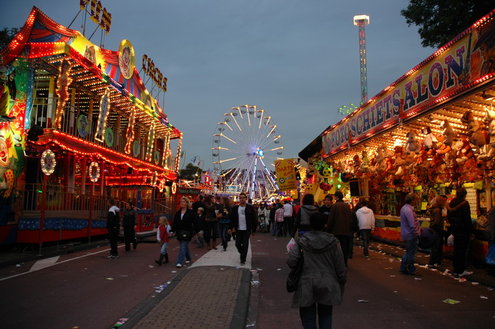 3 Oktober op zondag. Dat is voor de kermisexploitanten altijd dubbel feest, want het betekent een dag extra omzet als de echte viering op maandag plaatsvindt. Of ze een goeie 3 oktober hebben gedraaid? Vast wel. In elk geval was het ook tijdens de laatste kermisuurtjes nog bijzonder druk op het kermisterrein rond Molen de Valk.
