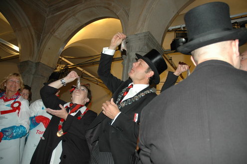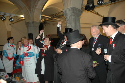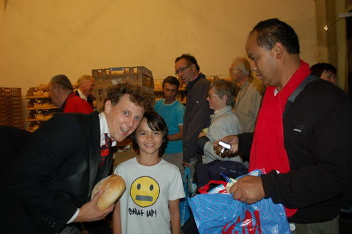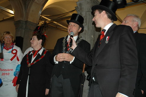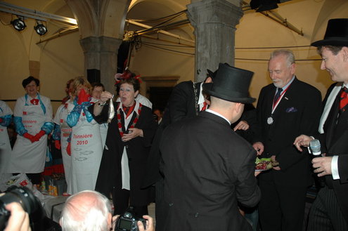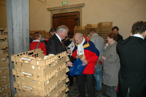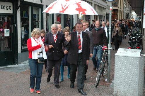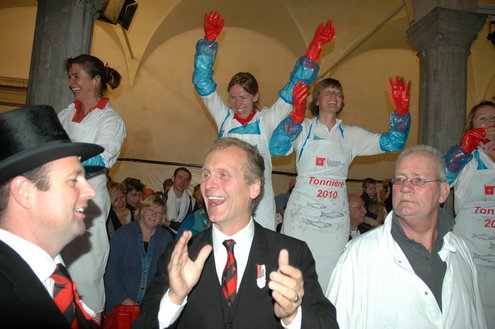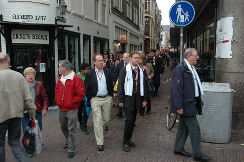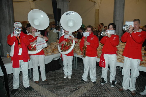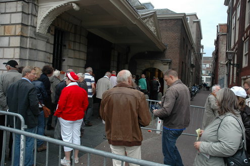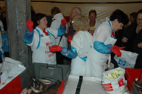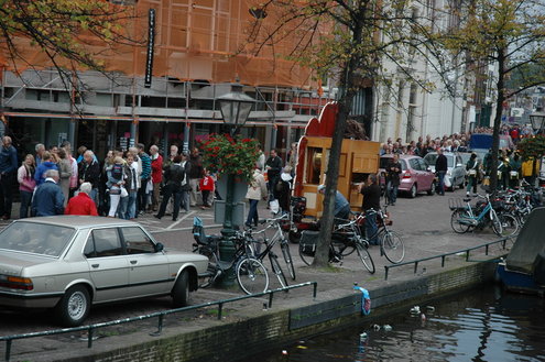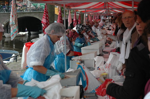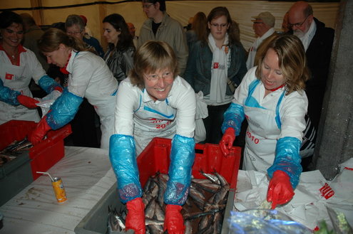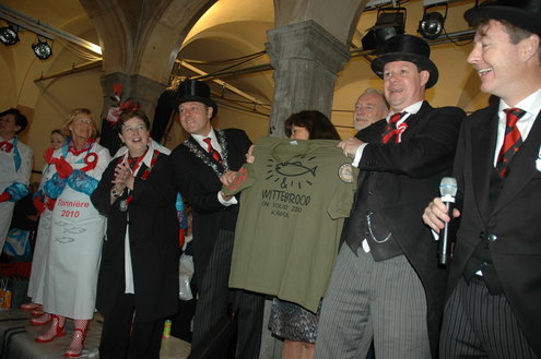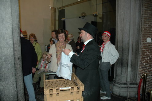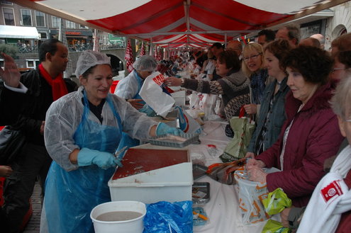 Rond 9.00 uur vanmorgen stagneerde het uitdelen van Haring & Wittebrood even. Elk jaar wordt rond dat moment de haring gekeurd door de burgemeester en de voorzitter van de 3 October Vereeniging. Het oordeel: “De haring is Leiden waardig”. (Foto’s: Chris de Waard).