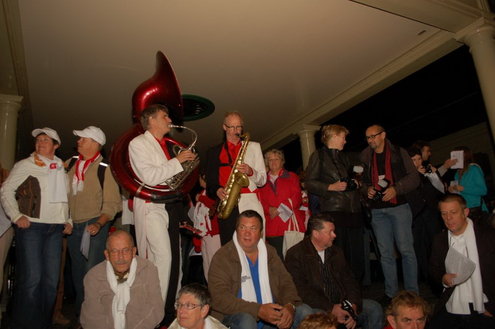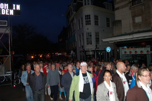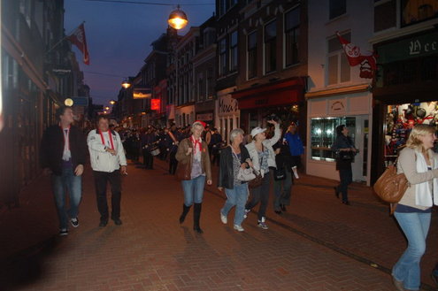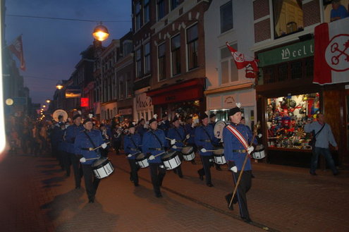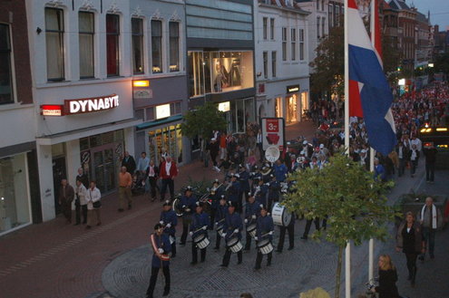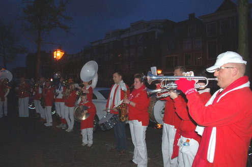 De Reveille vormde weer de start van het officiële programma. Vanmorgen vanaf ongeveer half zeven verzamelden alweer duizenden Leidenaren zich op en rond het Stadhuisplein om vervolgens met de Franciscus Band Leiden een rondtocht door het centrum te maken om de rest van de stad te wekken.
