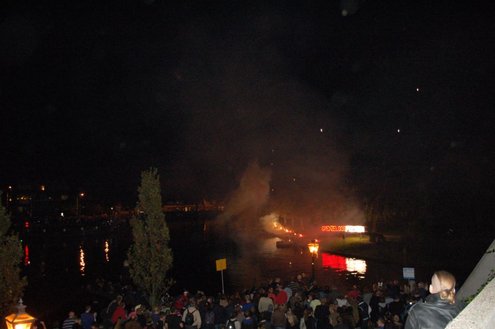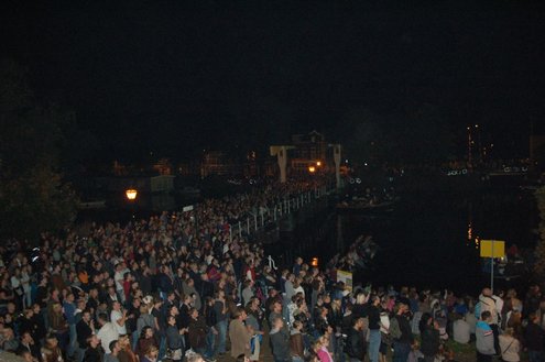Gisteravond om 23.30 uur werden de drie 3 oktoberfeestdagen afgesloten met een mega vuurwerk bij het Ankerpark en de Haven. Onder grote belangstelling van het toegestroomde publiek, dat zowel te voet als per boot naar de Haven was gekomen, vlogen schitterende kleurpartijen met uitwaaierende sterren de lucht in. Een mooie afsluiting van een zeer geslaagd Leidens Ontzet. In de Leidse café’s ging het feest nog door tot in de vroege ochtenduurtjes. Wat rest is rommel en rotzooi. Overal in de stad is men druk bezig de ‘souveniers’ van de duizenden feestgangers op te ruimen.