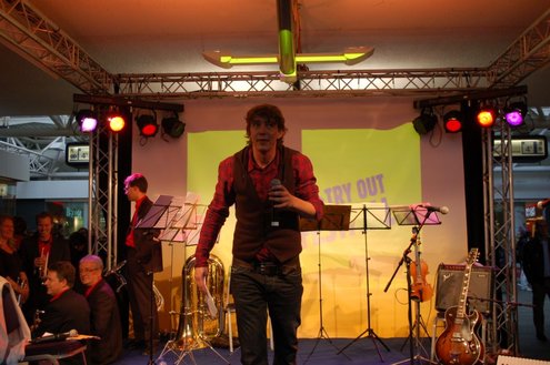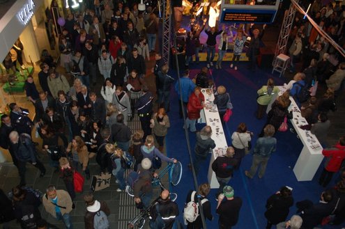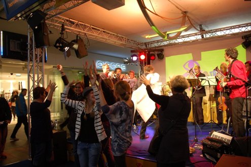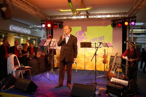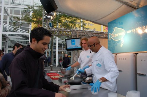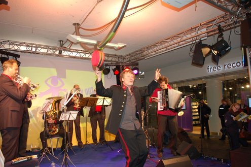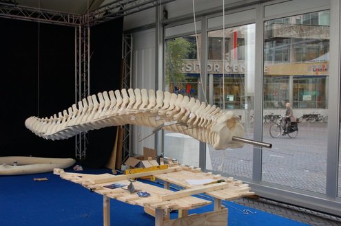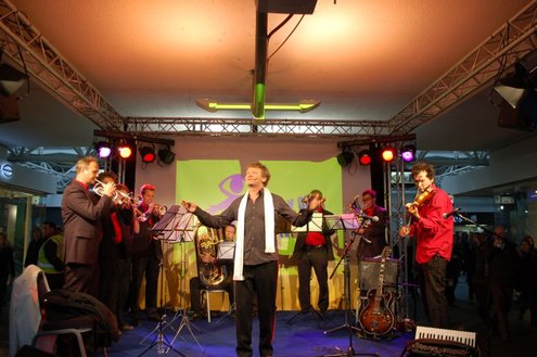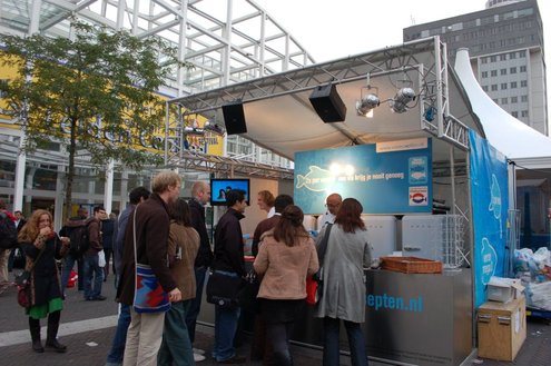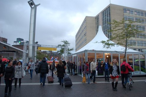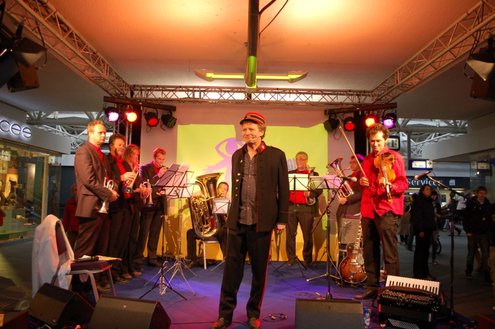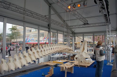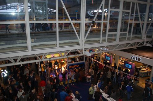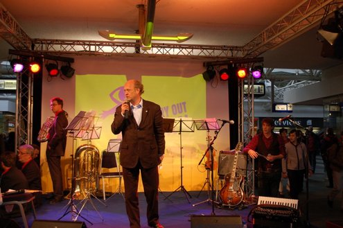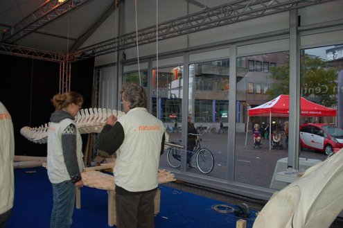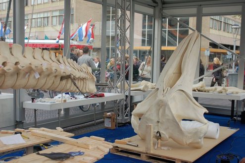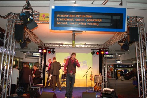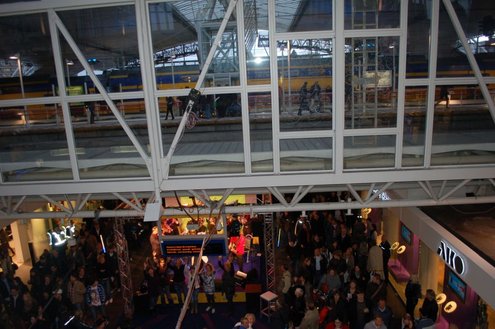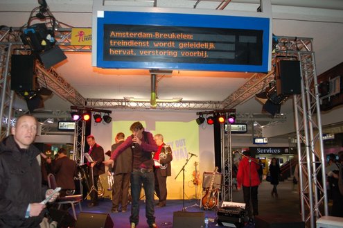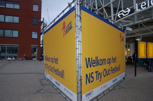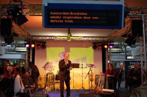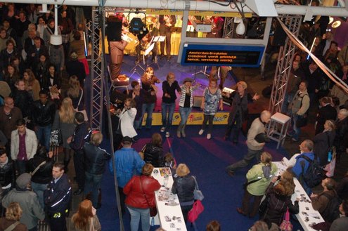 Vandaag is het driedaagse NS Try Out Festival van start gegaan op station Leiden Centraal. Binnen en voor het station is er van alles te zien, te doen en te beleven. Volgens de organisatoren van het festival “was wachten op het station nog nooit zo ontspannend”. Het startschot werd vandaag gegeven door Muziektheatercollectief Het Volksoperahuis, met swingende muziek, rauwe teksten, clichés en originaliteit. De publieke belangstelling was groot. Voor het station bouwde de ploeg van Naturalis aan een walvisskelet en in een standje daarnaast werd juist een lekker visje opgegeten. Er worden gevarieerde optredens gegeven, workshops, masterclasses en theater en natuurlijk is er veel muziek. Meer info en volledig programma: www.ns.nl/festival ( Foto’s: Emile van Aelst)