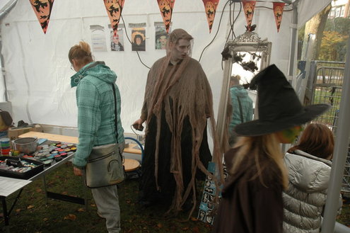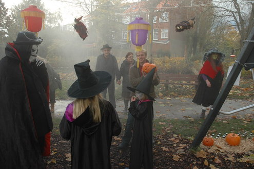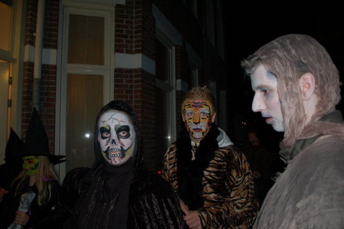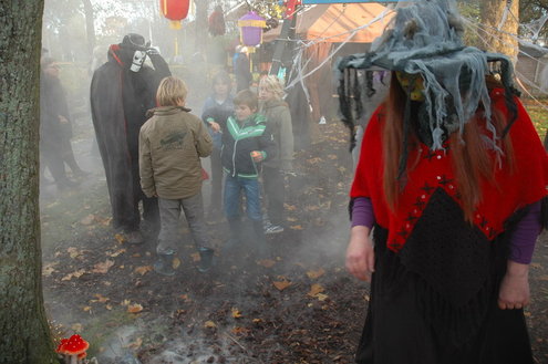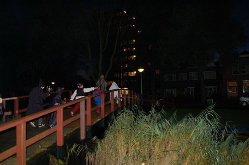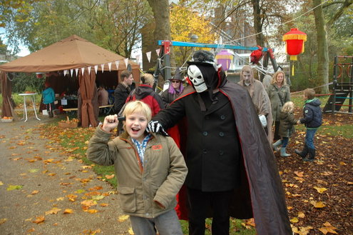 Een workshop pompoen snijden, een wedstrijd 'engste monster', een grimeur die 'echte wonden' schminkte. In Vreewijk werd gisteren flink uitgepakt tijdens de viering van Halloween in het park Oud Hortuszicht. Toen het donker werd, gingen de kinderen de wijk door op jacht naar snoep: "Trick or Treat!" (Foto's: Chris de Waard (middag) en Emile van Aelst (avond)).
