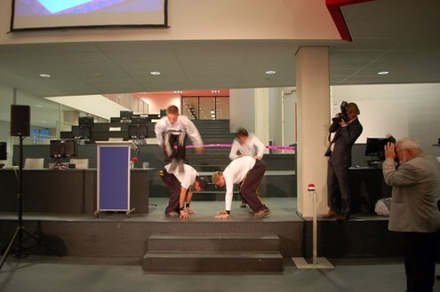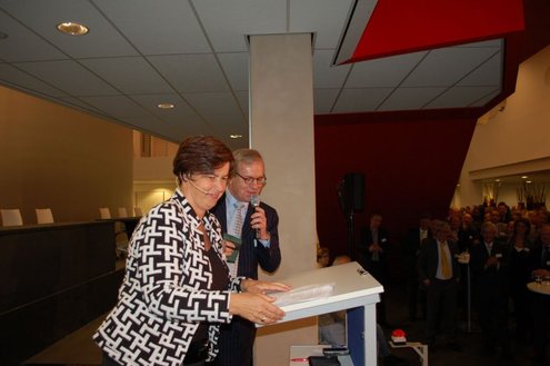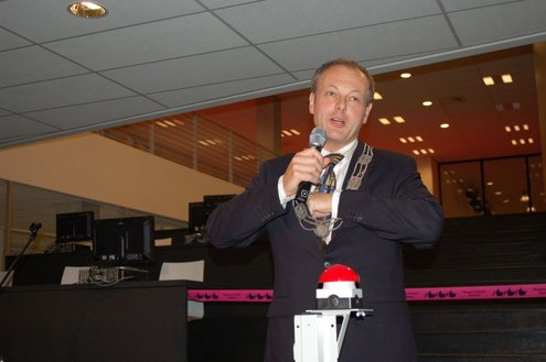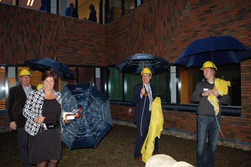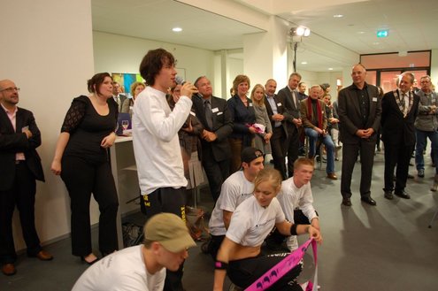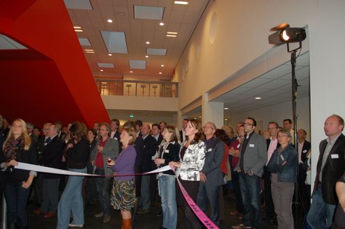 Burgemeester Lenferink verrichtte woensdagmiddag officiële opening van de nieuwbouw van de Hogeschool Leiden. (foto's: Emile van Aelst).