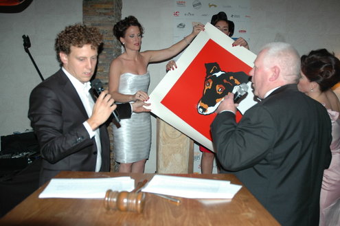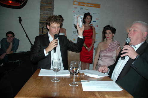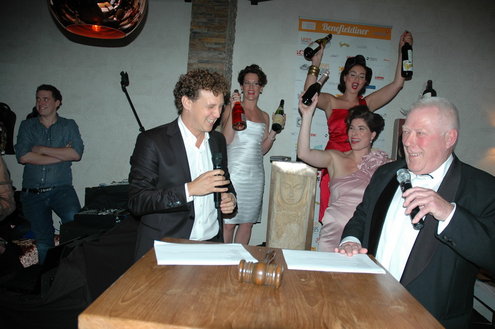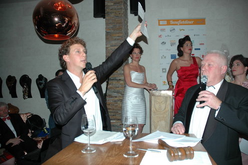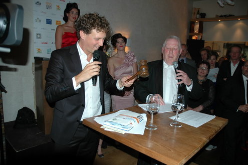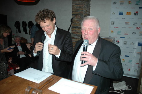 De Leidse cabaretier Jochem Myer is ambassadeur van Xenia. Samen met Aad van der Luit veilde hij ruim 18.000 euro bij elkaar. (Foto's: Chris de Waard, Video: IloveLeiden.com).