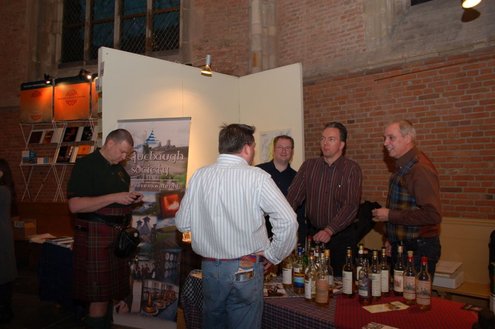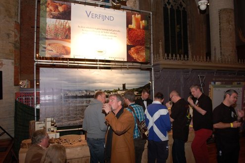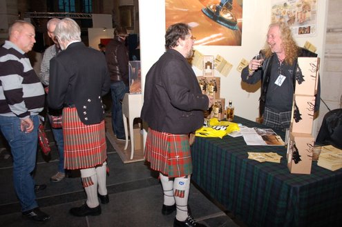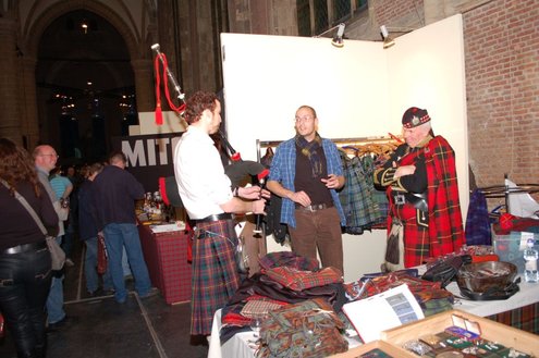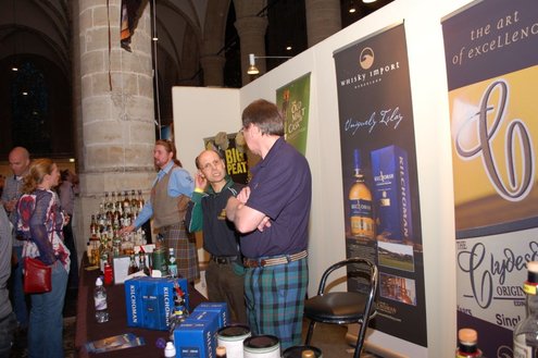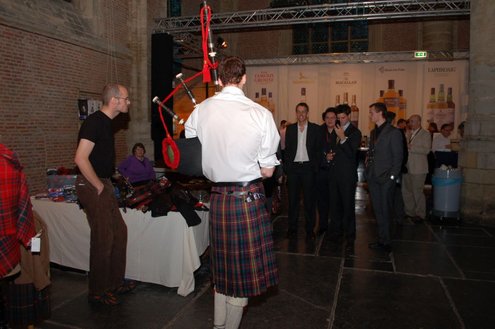 Drie dagen lang kon er gekeurd, geproefd, geklonken en ingekocht worden op het traditionele jaarlijkse Whisky Festival in de Leidse Pieterskerk. Naast de vele variaties in whiskysoorten, was er een keur aan bijbehorende hapjes, kazen, glazen, kleding, accessoires en natuurlijk kilts in allerlei uitvoeringen te zien en te koop. De authentieke doedelzakkenmuziek ontbrak niet, naast de mooie dames, die in sexy country-outfits rondliepen. Het driedaagse festival was volledig volgeboekt en wie er volgend jaar bij wil zijn kan maar beter vanaf morgen al reserveren. Meer info: www.whiskysociety.nl (Foto’s: Emile van Aelst)
