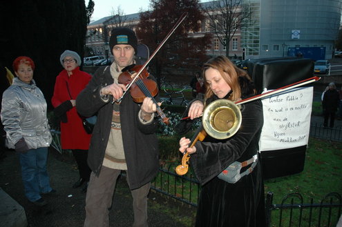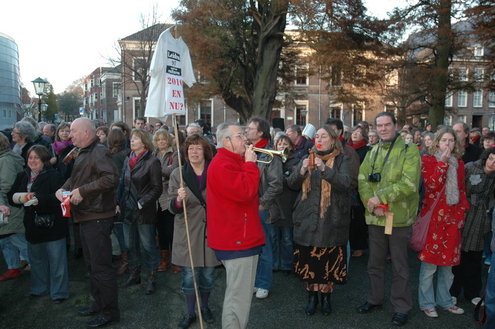 Cultuurwethouder Jan-Jaap de Haan (CDA) heeft zaterdagmiddag in felle bewoordingen afstand genomen van het regeringsbeleid om zo’n 20% op cultuur te bezuinigen en de btw op toegangsbewijzen te verhogen met 13%. Het kabinet van VVD en CDA sprak die bezuinigingen af in de onderhandelingen en eerder deze week steunde een kamermeerderheid de btw-verhoging per 1 januari aanstaande al. De Leidse CDA-wethouder is het daar volstrekt mee oneens: “Wat ging er toch mis in dit land. In plaats van de cultuur te beschermen, wordt deze grof geweld aangedaan.” Zijn eigen partij verweet hij gebrek aan visie en lef.” Het leverde hem een luid applaus op van de naar schatting 2500 toehoorders. In de CDA-fractie in Leiden wordt er overigens heel anders gedacht over de bezuinigingen op cultuur.