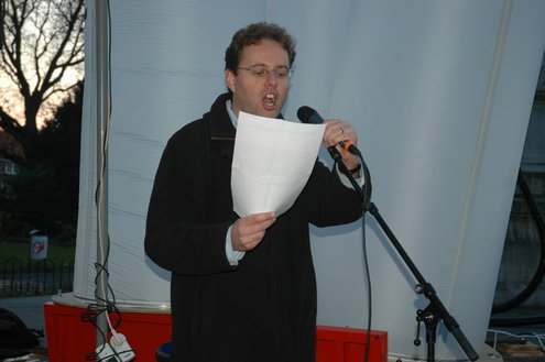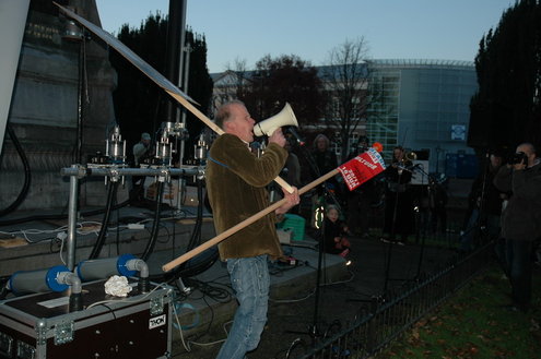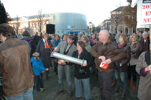 Cultuurwethouder Jan-Jaap de Haan was één van de sprekers die met een vlammend betoog een lans brak voor de cultuursector. Hij ageerde daarmee flink tegen de landelijke bezuinigingen die onder andere zijn eigen CDA wil doorvoeren. (Foto's: Chris de Waard / Video's: Emile van Aelst).