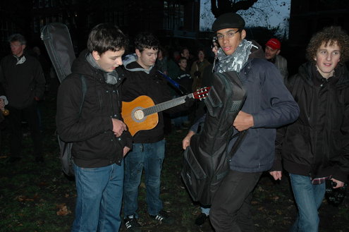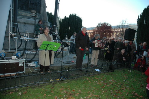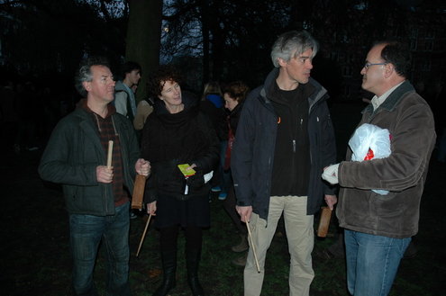 Naast zijn eigen verhaal las De Haan ook een statement van Armin van Buuren voor. De topdj treedt momenteel op in India, maar had afgelopen nacht een speech doorgemaild met het verzoek die voor te lezen. Iets soortgelijks deed Schouwburgdirecteur Bart van Mossel namens Jochem Myjer. Naast de twee eerdergenoemde sprekers waren er ook toespraken en gedichten van Pink Meltzer, Ben Walenkamp, theatermaker Paul Koek en stadsdichter Jaap Montagne. Tussen de speeches door speelde de Leidse band Dempsey en was er een ‘concert’ van het Sirene-orkest.