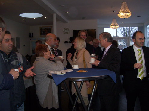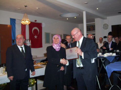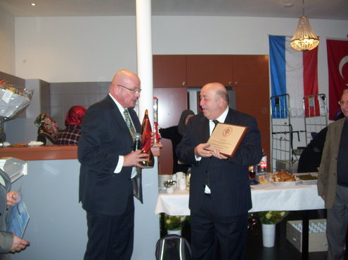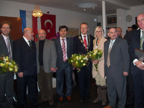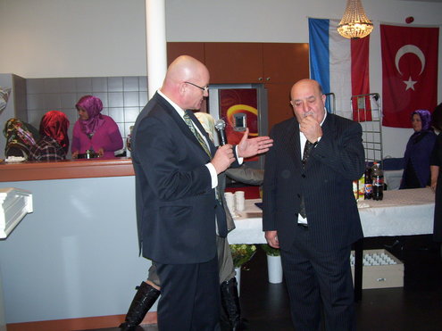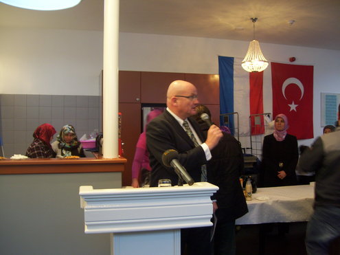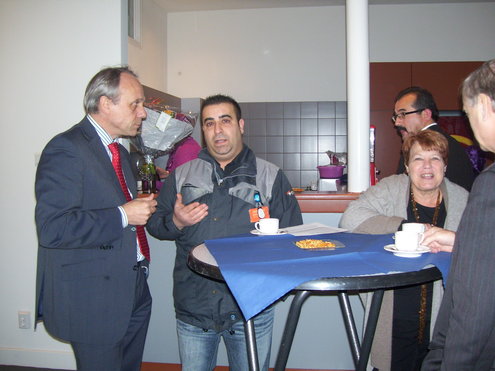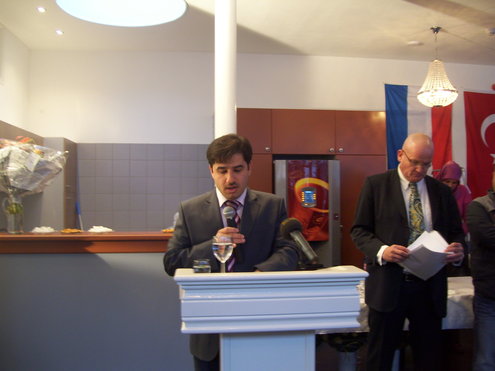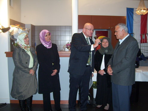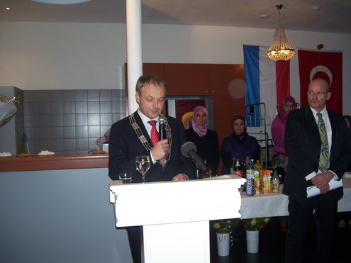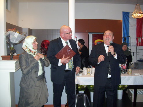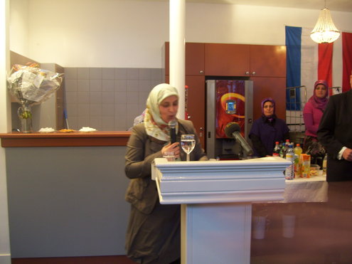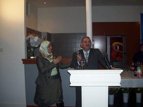 Vanmiddag vond de feestelijke opening plaats van het nieuw aangebouwde ontmoetingscentrum van de ISN-Mimar Sinan Moskee aan de Curaçaostraat in Leiden-Noord. Burgemeester Lenferink onthulde samen met de heer Z. Arslan, die de verhinderde voorzitter van de ISN Nederland de heer B. Senay verving, een speciale plaquette. Voormalig wethouder Aart van Bochove introduceerde verschillende sprekers en gaf aan zich “als echte CDA’er nauw betrokken te voelen bij de Turkse gemeenschap in Leiden en de T.I.C.V (Turkse Islamitische Culturele vereniging) een warm hart toe te dragen, een organisatie die veel doet op het vlak van allerlei maatschappelijke betrekkingen.” De nieuwe ruimte wordt gebruikt voor cursussen, filmavonden en als ontmoetingsplek voor jongeren en staat open voor iedereen en dus ook voor allerlei buurtactiviteiten. Een prima initiatief, dat ook door burgemeester Lenferink toegejuicht werd. (foto’s: Jacqueline Borg)