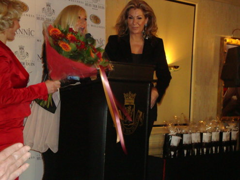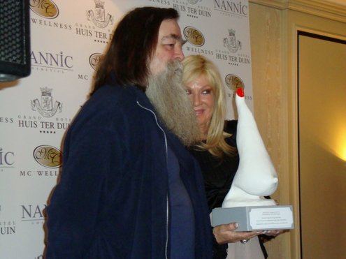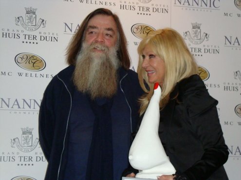 Tijdens de Nannic-award 2010, die gisteren georganiseerd werd in Grand Hotel Huis ter Duin in Noordwijk, is Mary Borsato uitgeroepen tot ‘sterkste vrouw’. Borsato liet de andere genomineerden, Antje Monteiro en Leontien van Moorsel achter zich. De Leidse kunstenaar Dick Bakhuizen van den Brink had de prijs vervaardigd, een beeldje van een vrouwenborst, welke kunstzinnig overgaat in een opgestoken vrouwenduim. De langharige en eveneens langbaardige kunstenaar viel in eerste instantie wel een beetje uit de toon tussen al de goed gestylde BN’ers, maar al snel werd duidelijk, dat hij dé kunstenaar was van het felbegeerde beeldje. De award is bedoeld voor de vrouw, die laat zien waar zij voor staat en niet alleen voor de mooiste of populairste dame. Borsato is ontwerpster van bruidskleding en combineert haar werk met het moederschap. ( Foto’s: PR)