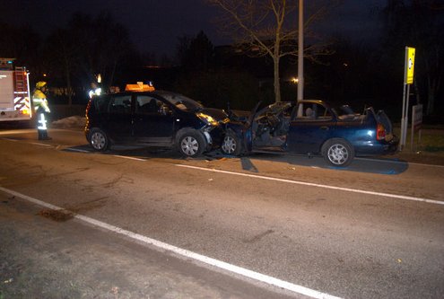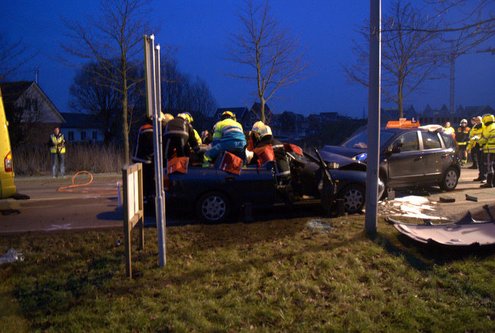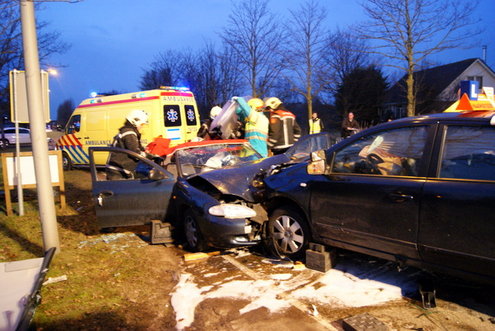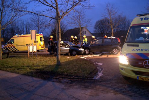 Dinsdagmiddag zijn op de Voorschoterweg in Valkenburg twee auto’s frontaal op elkaar gebotst. Een lesauto met een leerling reed in de richting van Valkenburg en kwam op de weghelft voor het tegemoetkomende verkeer terecht. Daar botste de 18-jarige leerlingbestuurster op de auto van een 44-jarige man uit Monster. Die laatste raakte daarbij bekneld in zijn auto en moest door de brandweer uit zijn voertuig worden gehaald. Hij is overgebracht naar het LUMC. In de auto zat ook zijn hond. die bleef ongedeerd en werd meegenomen door de Dierenambulance. De 18-jarige bestuurster en haar rij-instructeur, beiden uit Noordwijk werden met nekletsel overgebracht naar het ziekenhuis.