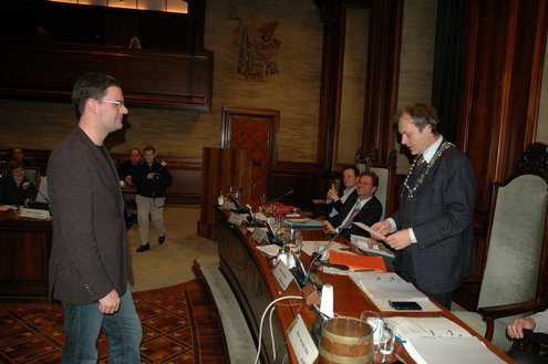 Roelof van Laar is afgelopen week geïnstalleerd als raadslid voor de PvdA. Hij volgt de vertrekkende Gerda van den Berg op die per 1 maart directeur-bestuurder wordt bij De Sleutels. Van Laar zat in de vorige raadsperiode ook al in de gemeenteraad, maar viel door het verlies van de PvdA bij de gemeenteraadsverkiezingen net buiten de boot. Daarvoor was hij ook al enige tijd duo-raadslid. Henny Keereweer is de nieuwe fractievoorzitter van de PvDA in Leiden. (Foto: Chris de Waard).